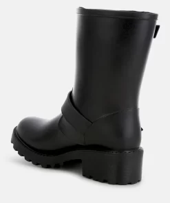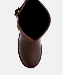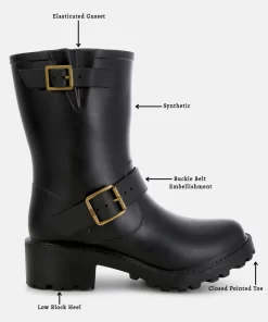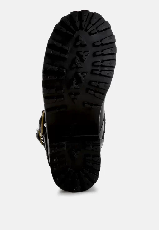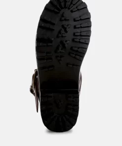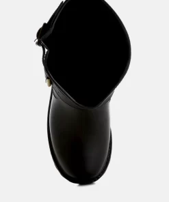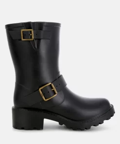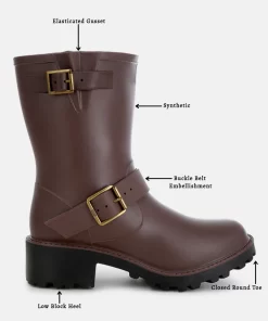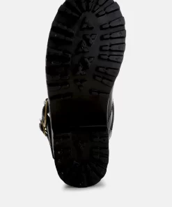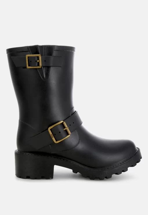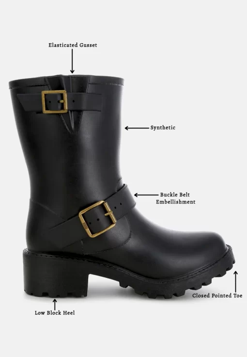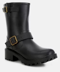 The calf boots have an edgy rugged feel which exhibits sophistication and vogue! The harness detail gives them a vintage feel while the soft cushion insoles make them a comfortable pair!