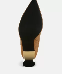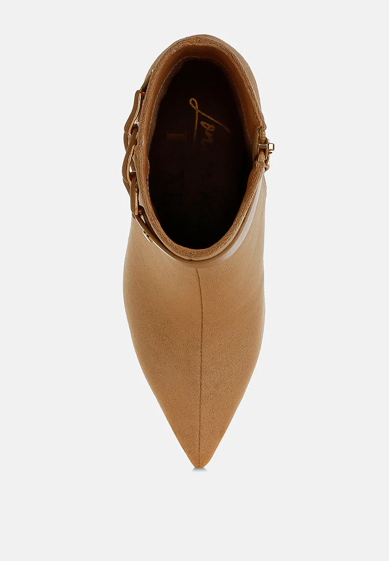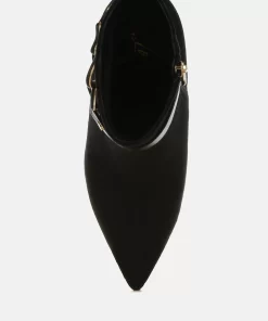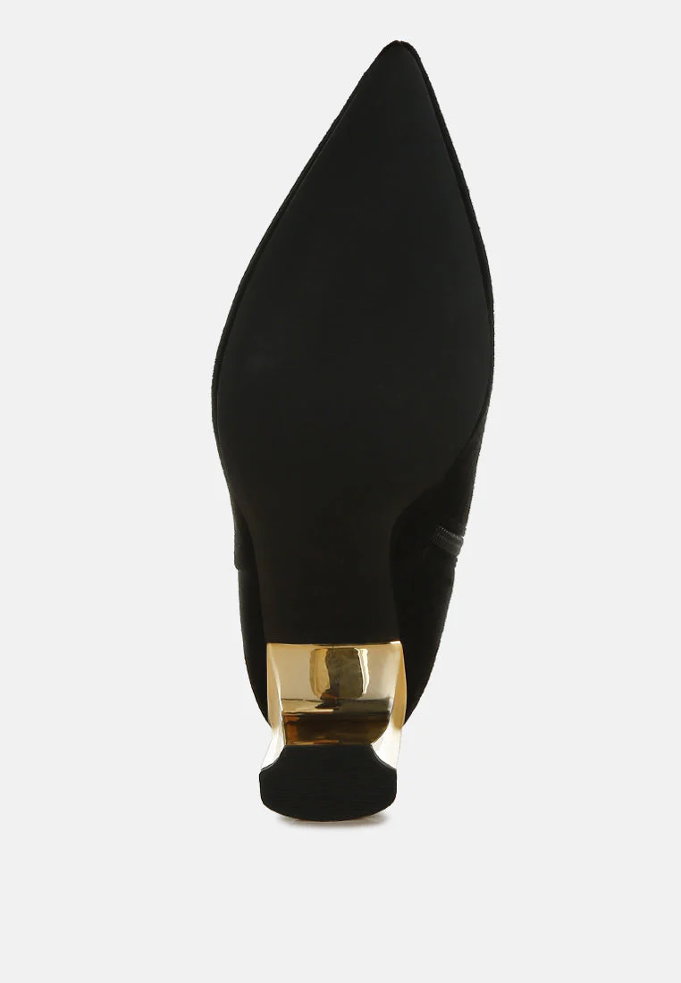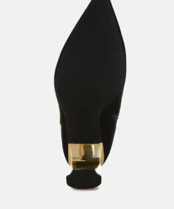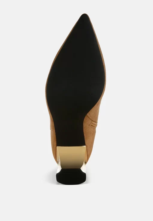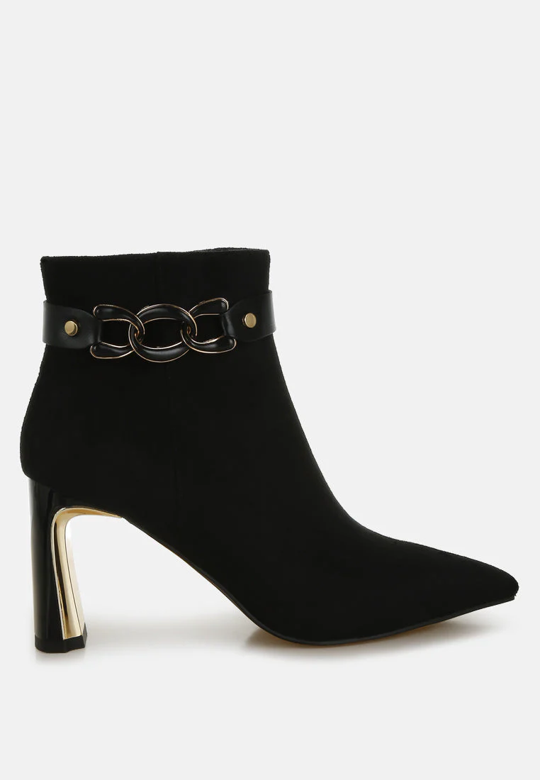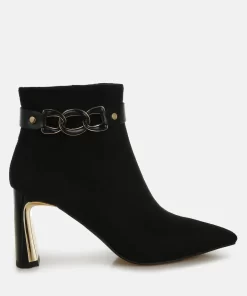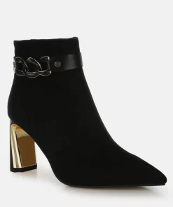 The stylish boots are sure to take your ensembles up a notch with the metallic flared slim block heel and the chain belt detail which elevates the design of the boots. The boots are eccentric and also comfortable with soft cushion insoles.