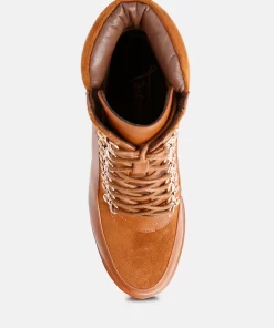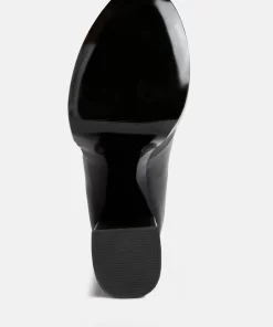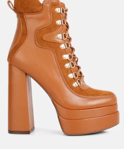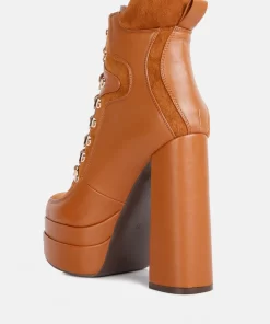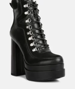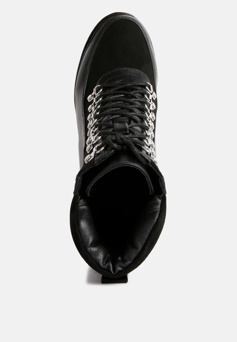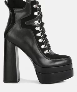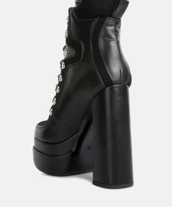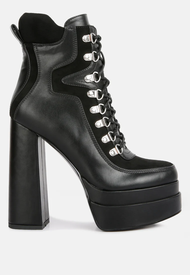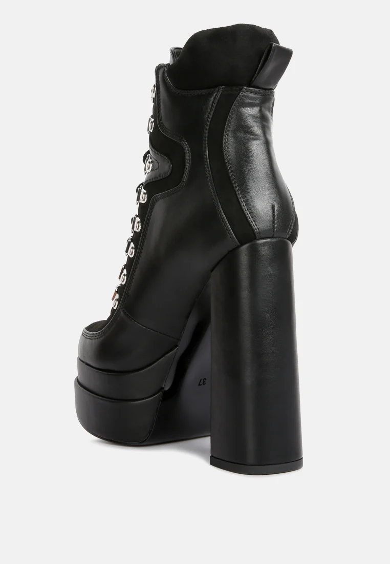 High Block Heeled suave Biker Boot in faux leather and microfiber panel is all edgy and chic! Comes with metallic eyelets which line up the top. The high chunky platform is height booster, reducing pressure on toes.