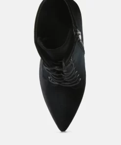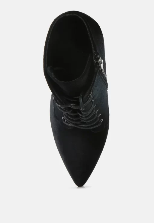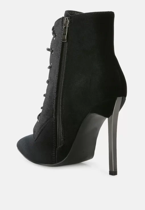 Stiletto High Heeled Velvet Boot comes with side zipper opening. The high heeled stiletto sandal in velevet is chic and luxurious.