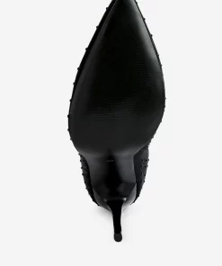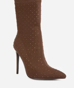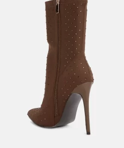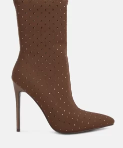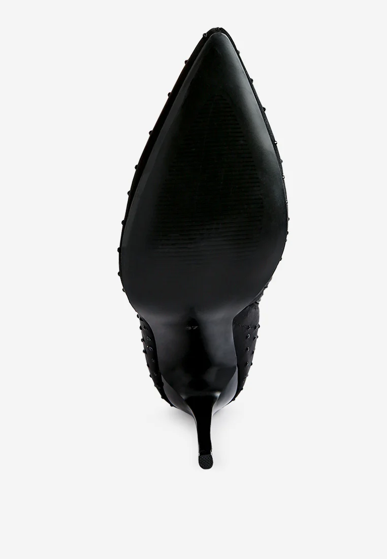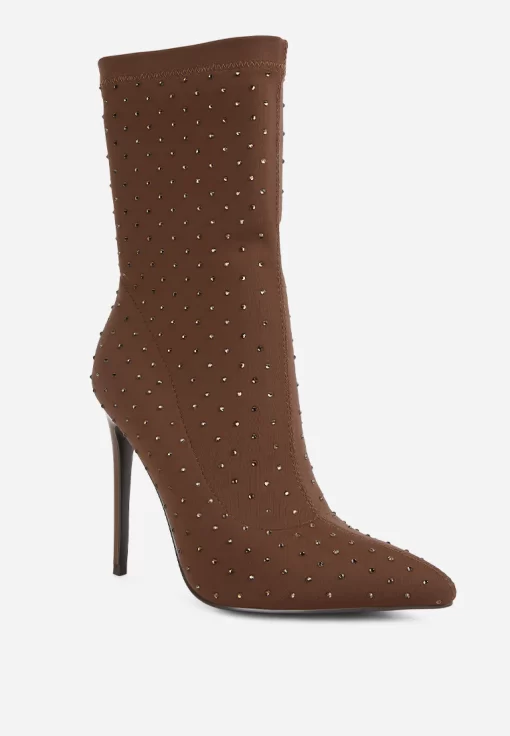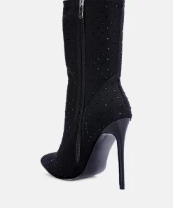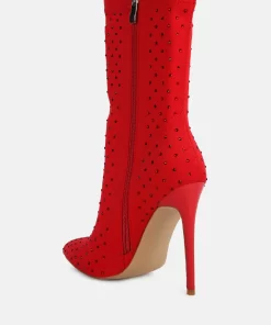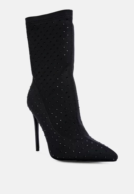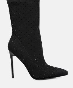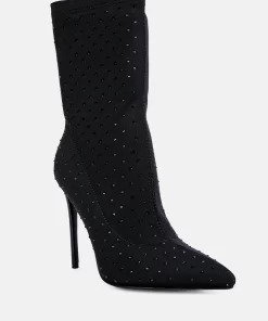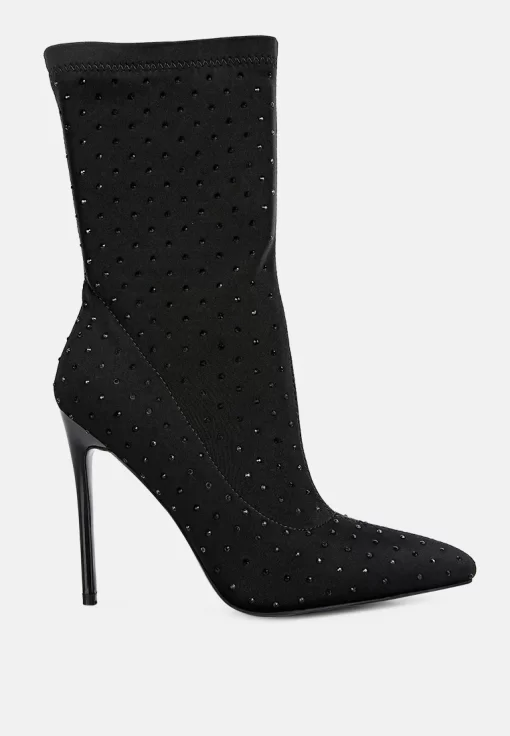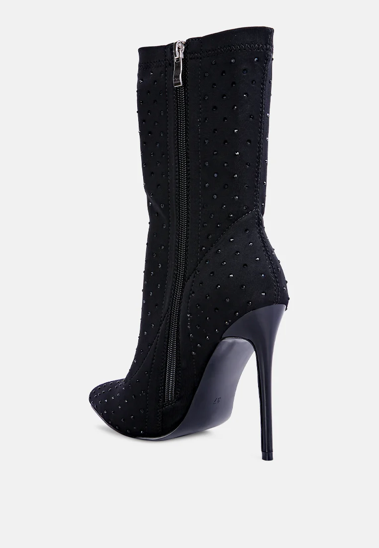 Cheugy Embellished Ankle Boots have rhinestone detailing, that stand out in a crowd of a million. These are high stretch lycra boots with a closed pointed toe. These heeled boots will dazzle the crowds making you the Boss Babe you deserve to be. A perfect fit for an evening or just go with the flow night, pick out these embellished girls’ boots and go for a night that you won’t forget.