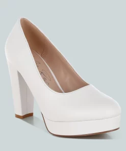 Women’s Shoes London Rag Damsor Faux Leather Block Heel Pumps | White