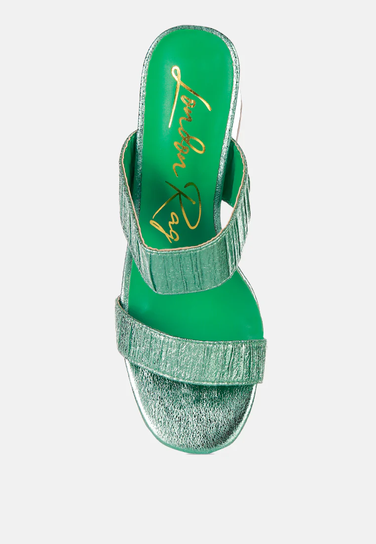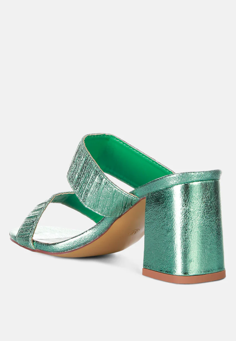 Step into sleek style with Metallic Slip-On Block Heels. The metallic finish adds a touch of shine, perfect for any occasion. Combining comfort and fashion, these block heels offer easy wear and a confident lift.
