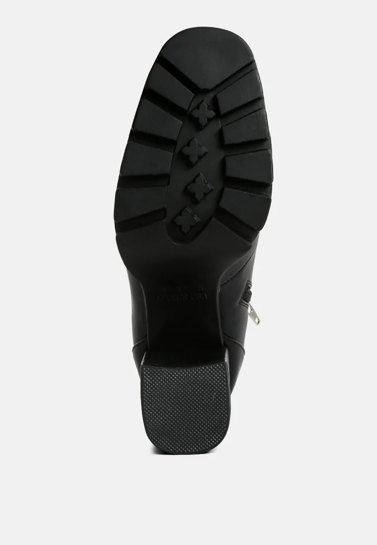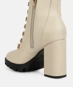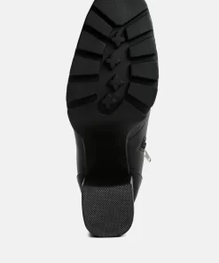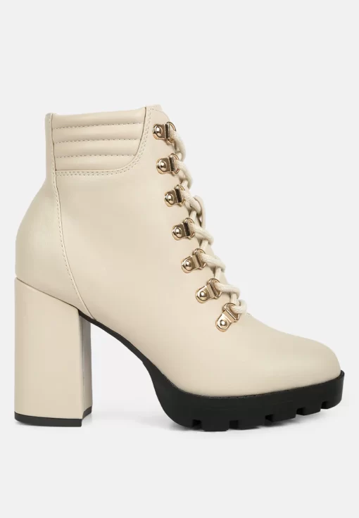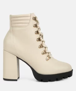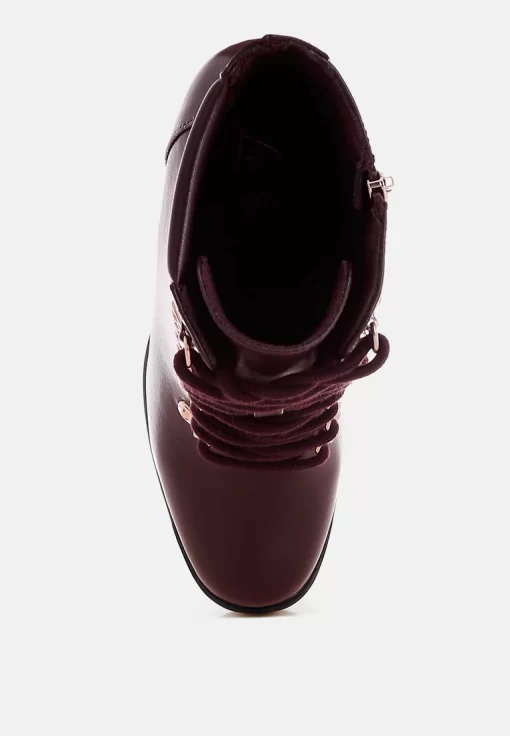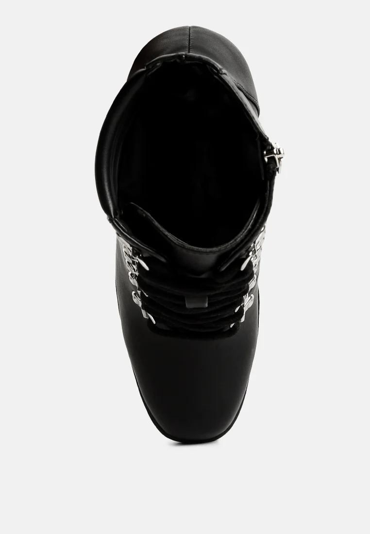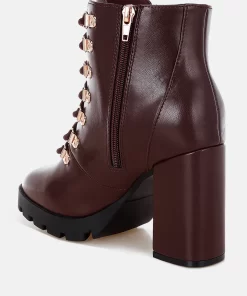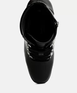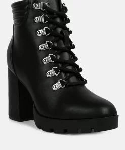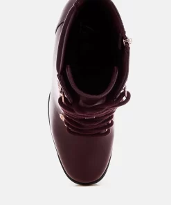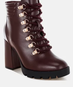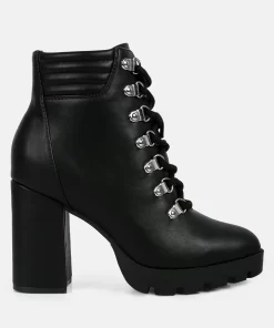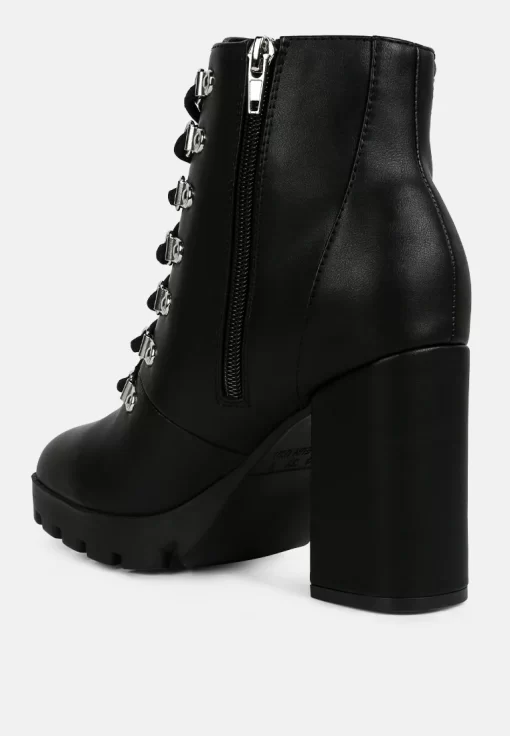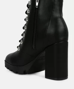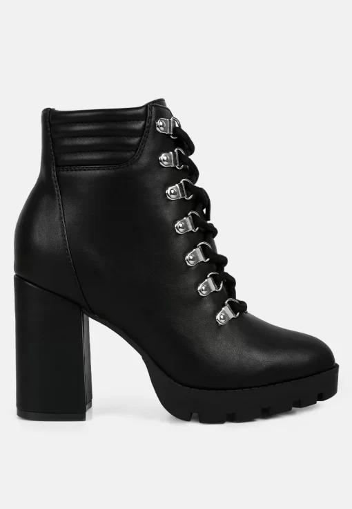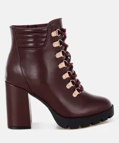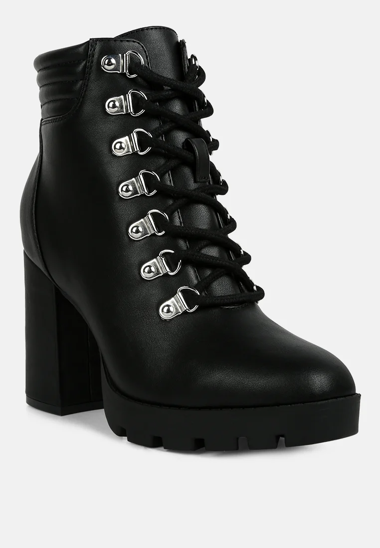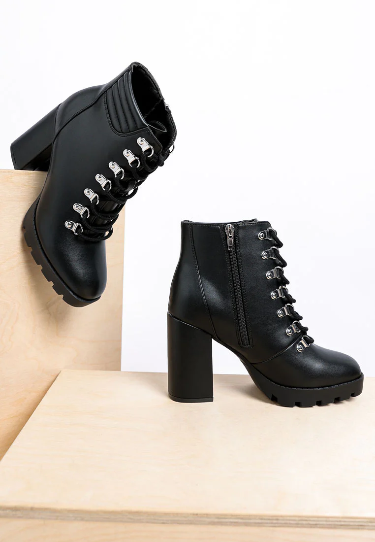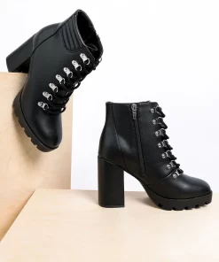 Be party ready in our Lace Up Block Heel Boots. These women boots have a sturdy lug sole and metallic eyelet detail, making you look like a quintessential diva. These lace up ankle boots are sure to bedazzle everyone with just a look. Pair them up with leather pants or a dress, these block heel boots will stop any party the moment you arrive, killing everyone softly with just one look. A lightly padded insole is truly a bliss for your feet.