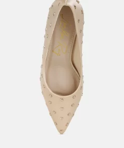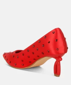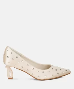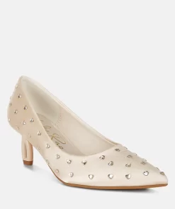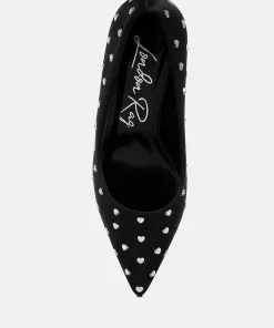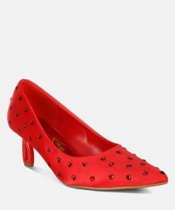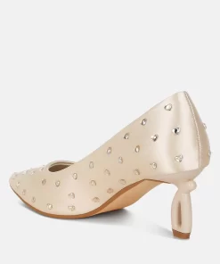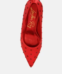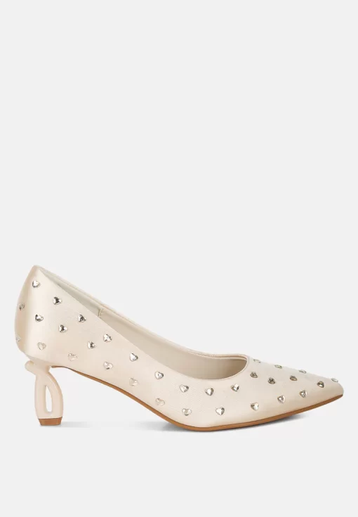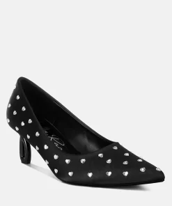 Say hello to your new favourite pumps! Crafted from luxurious satin, these pointy-toed beauties feature exquisite fantasy heels. Endlessly versatile, these heart-shaped rhinestone-studded pumps are perfect for dressing up or down, whether you’re enjoying a weekend outing or attending a special party.