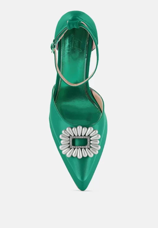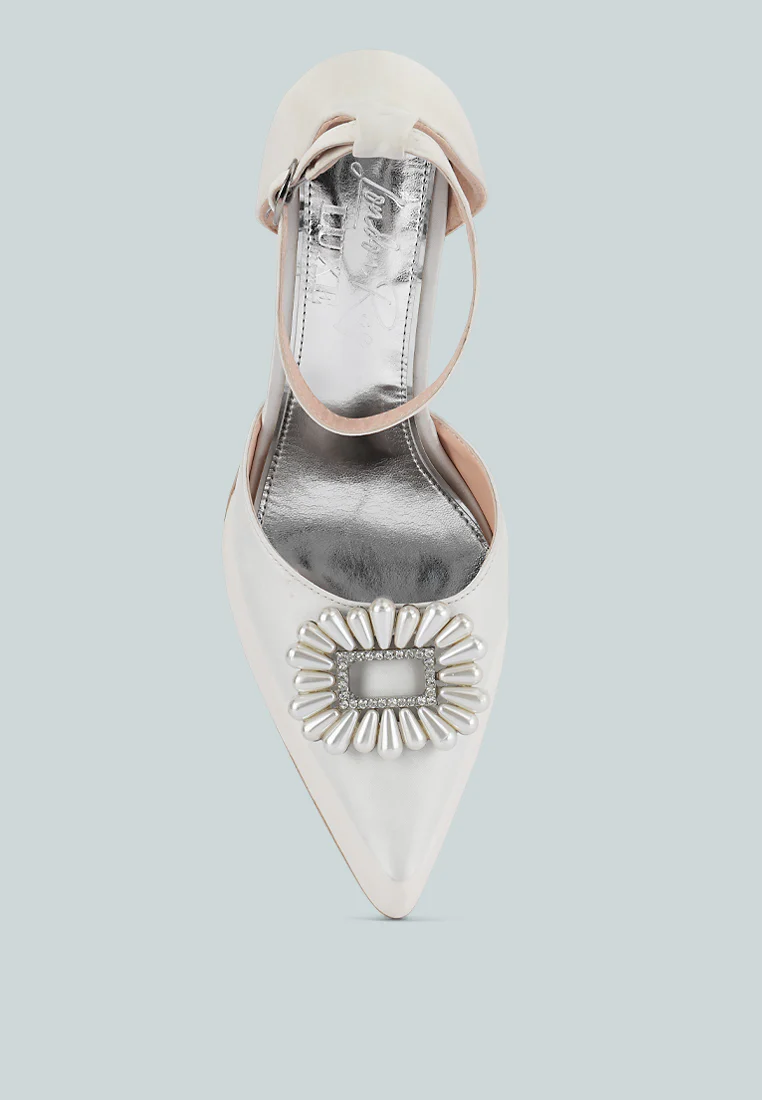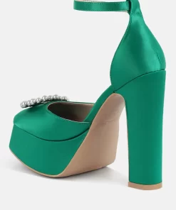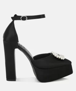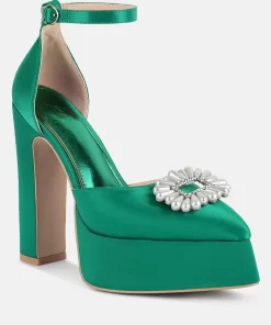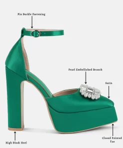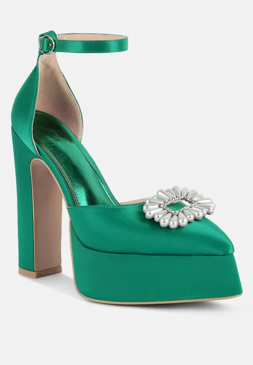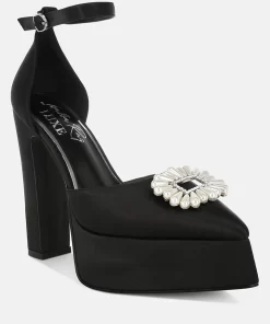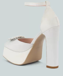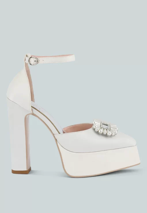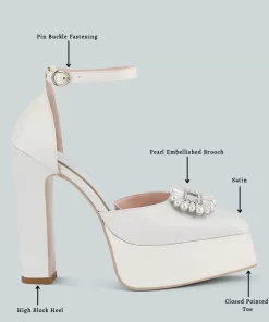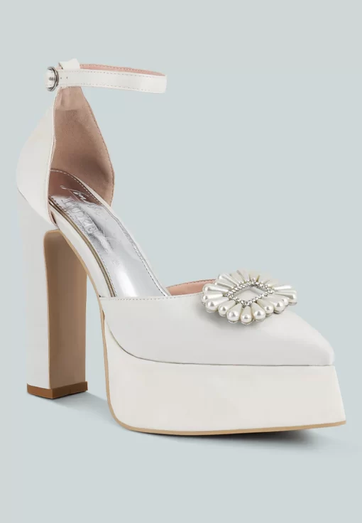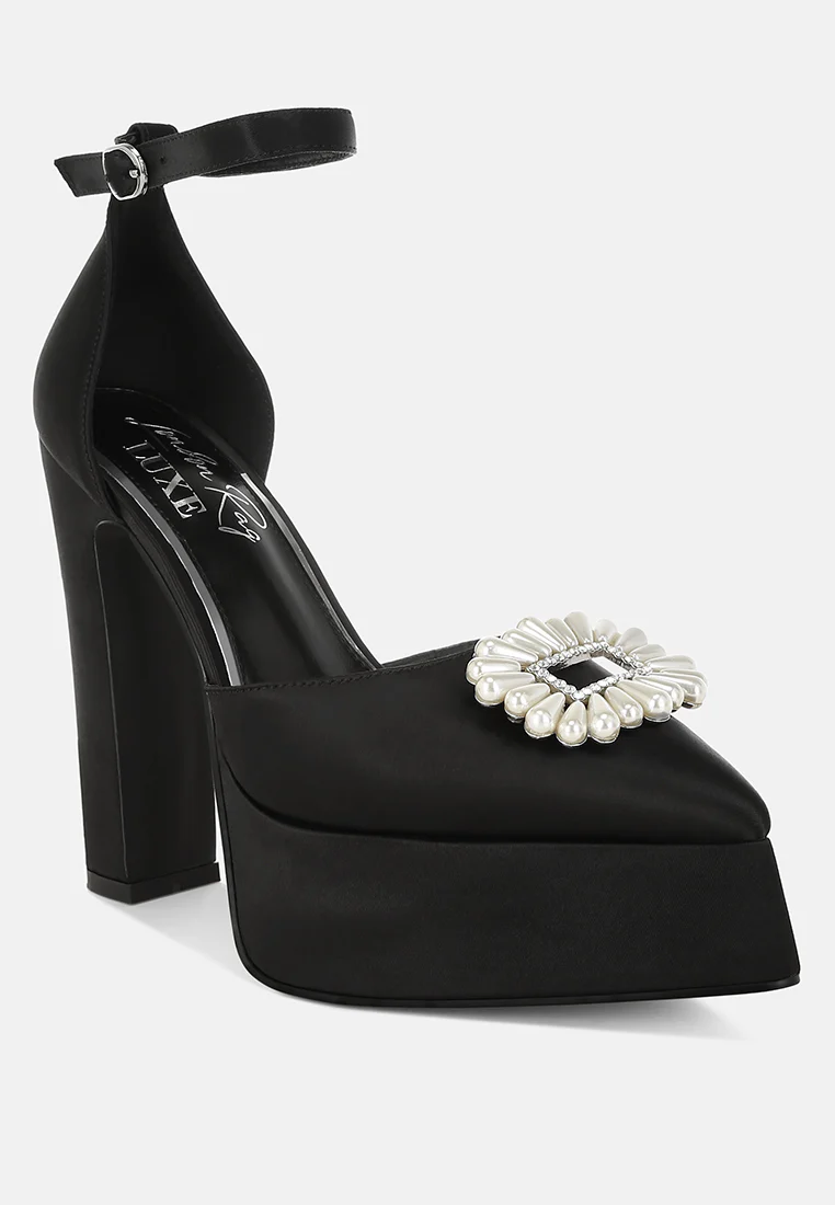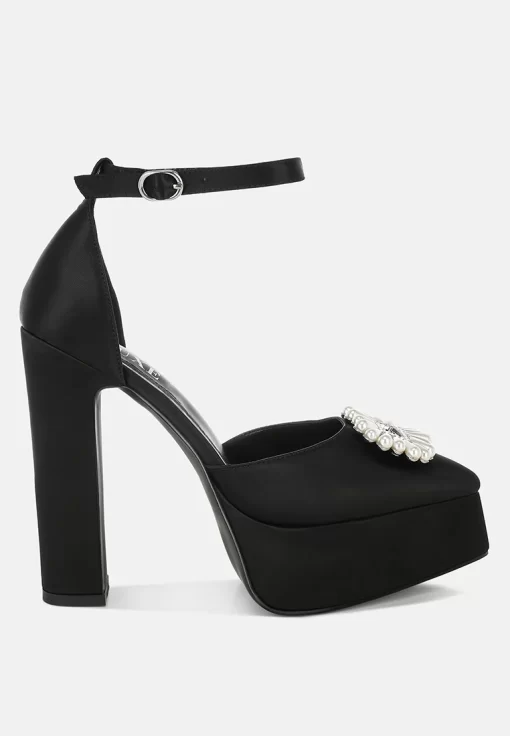 The high heel platform sandals are ideal for a fancy occasion that’s all about elegant glamour! The pearls embellished brooch looks opulent and elevates the visual aesthetic of the sandals. The lightly cushioned insoles cut strain.
