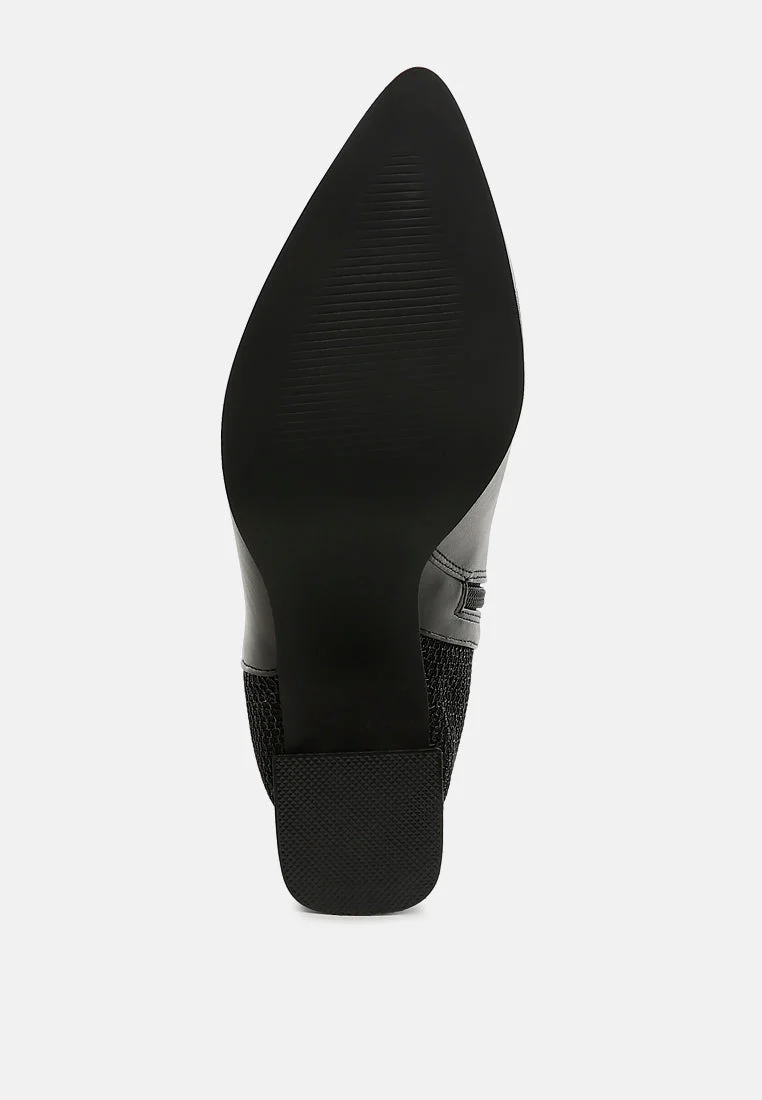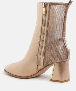 We’re in love with these ankle boots featuring a pointy toe, crafted from the blends of faux leather & mesh fabric for the ultimate comfort to enhance your weekend look. With a flared stacked block heel and a side zipper, these boots fit snugly around the ankle, making them irresistible. They’re perfect for pairing with your party outfits or leggings!