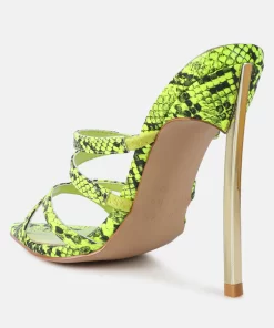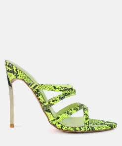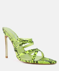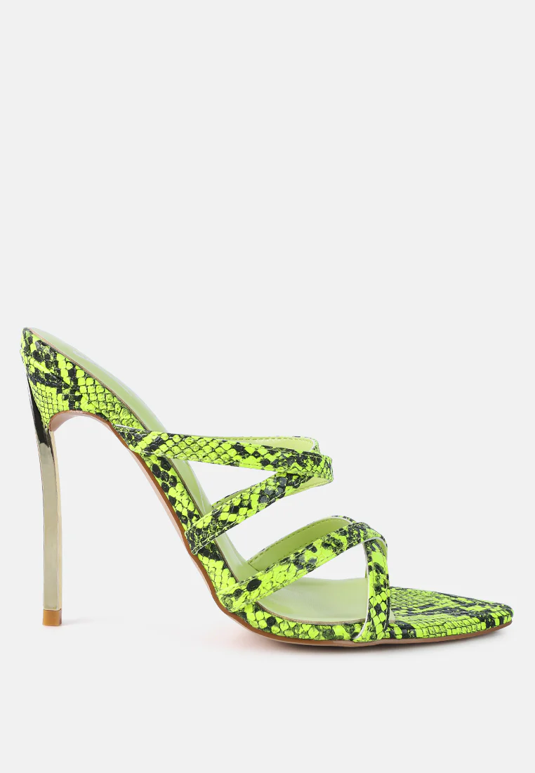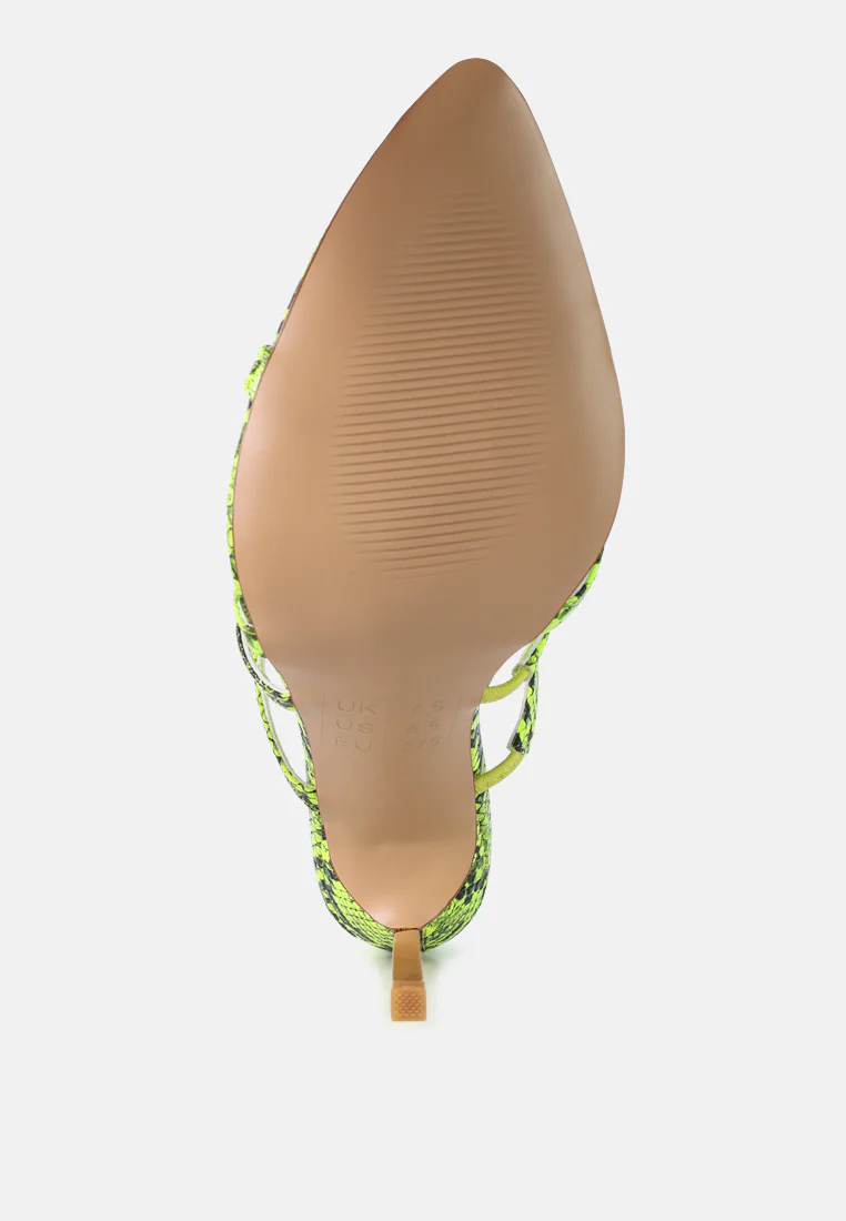 Step into the spotlight and become the Femme Fatale everyone envies with these high stiletto heels featuring snake print deets. The pointed toe and strappy design are right on-trend, screaming trends. And the metallic heel highlights add just the right amount of drama to your look.