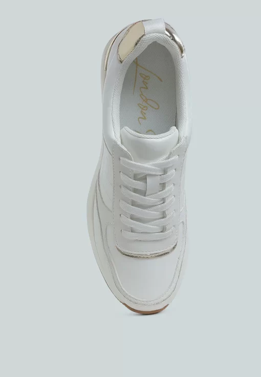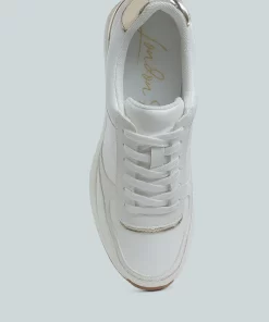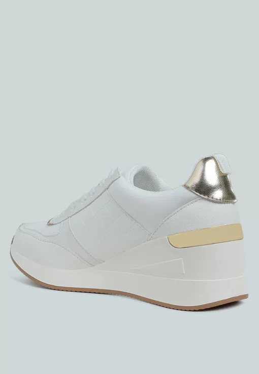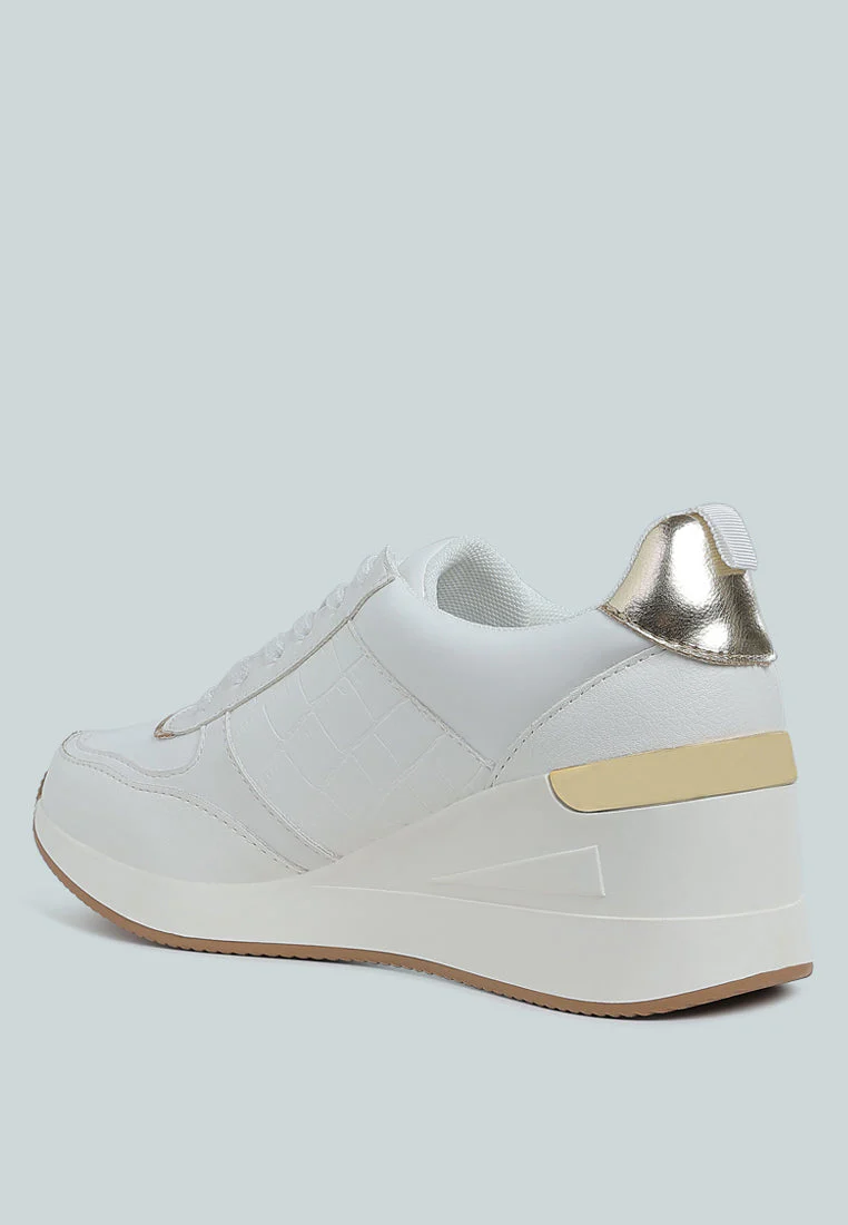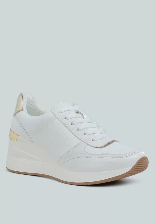 Add some sporty vibes to your outfit of the day with these lace-up kicks. Crafted from premium faux leather and adorned with a stylish croco embossment, these chunky wedge heels are a must-have. Pair them with your favorite gym set for a look that will inspire your workout!