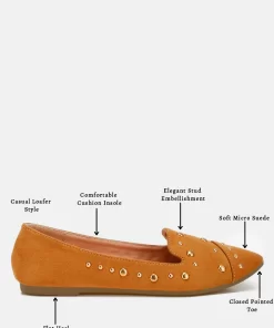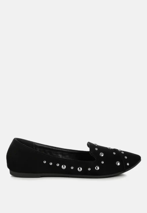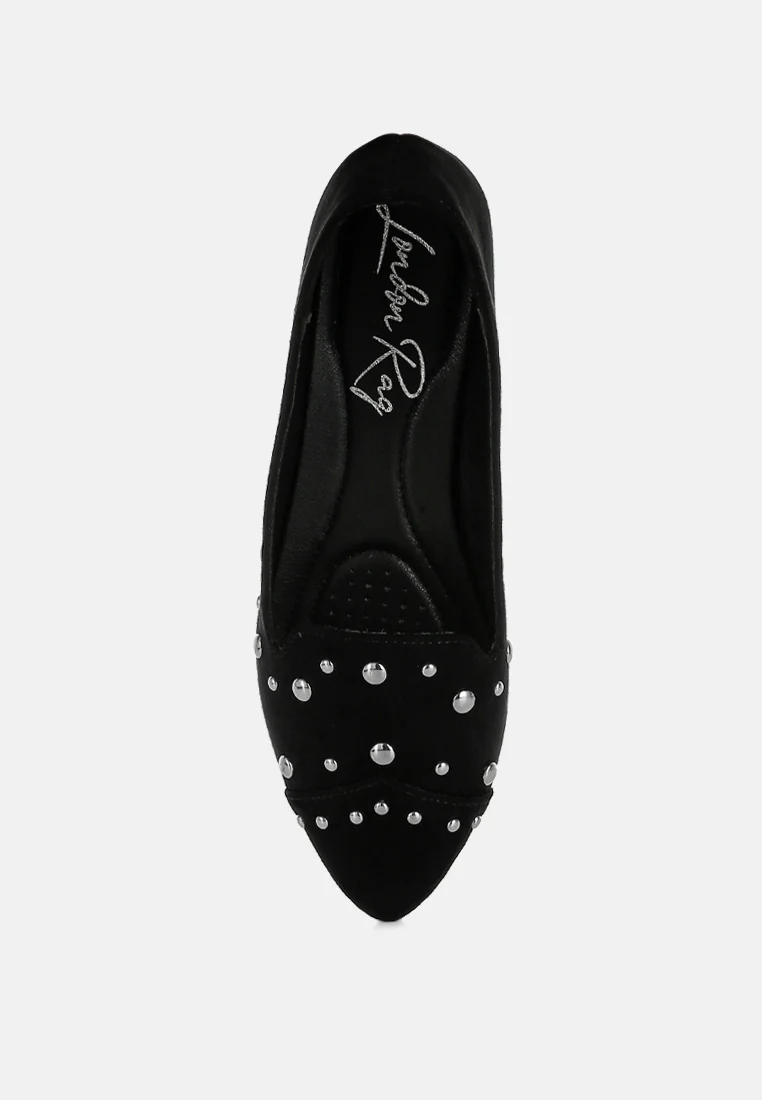 The flat ballerinas are a versatile style that will amp up your everyday basics with their edgy stud embellishments. The ballerinas have a soft cushion insole which cuts strain and offers a relaxed fit.