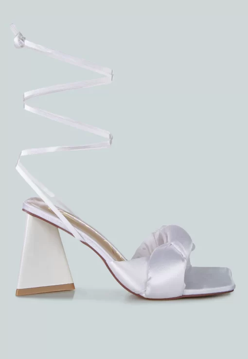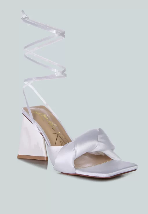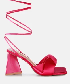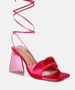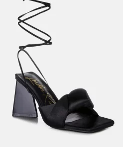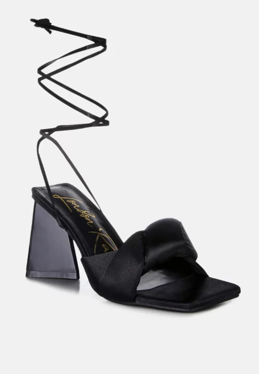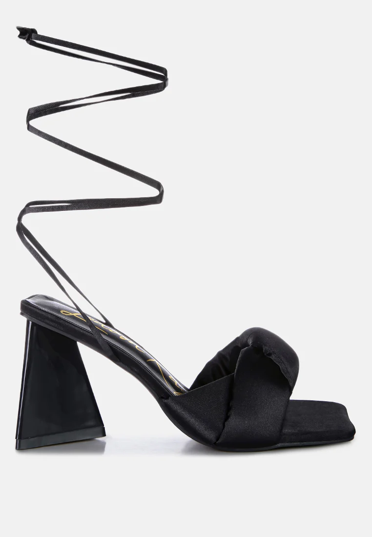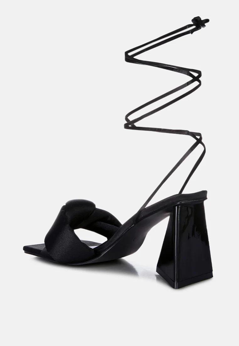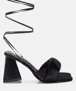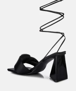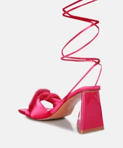 The stuffed satin knotted strap sandal, featuring an intriguing triangle block heel in patent faux leather, is an absolute showstopper for parties. These high lace-up block heel sandals look stunning and feel amazing on your feet. Once you slip into these beauties, they’re bound to become your go-to casual sandals in no time.