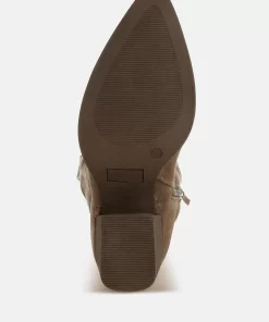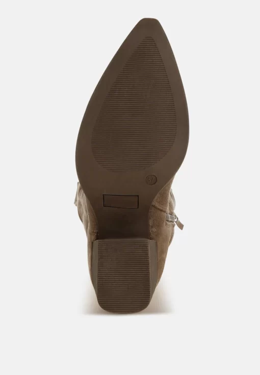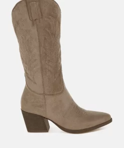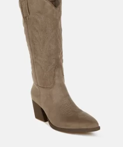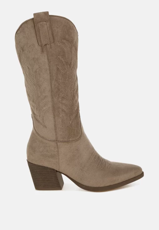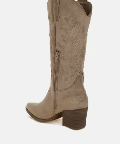 The long cowboy boots are crafted with durable and soft microfiber with gorgeous embroidery detail and elevate the visual aesthetic of the boots. The zipper detail and pull tabs are convenient and make the pair easy to wear. The boots are versatile and would look lovely paired with a faux leather skirt or shorts.