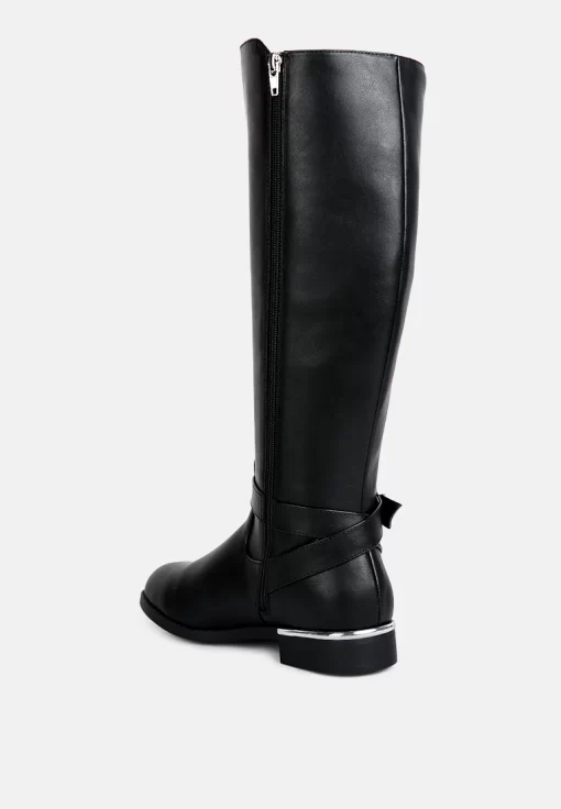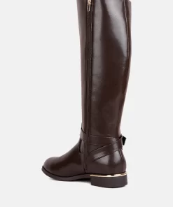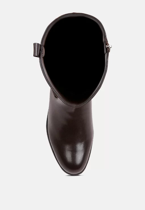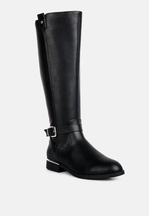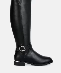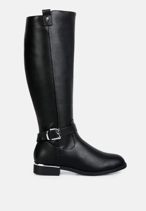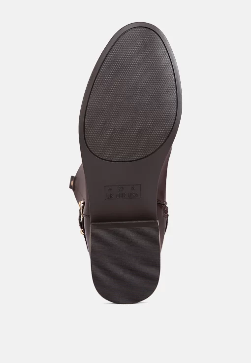 The buckle-embellished boots are edgy and chic with an accentuating gold sling detail on the heel, accentuating the heeled boots’ aesthetics. The boots are sure to make a bold statement and are comfortable to wear with soft padded insoles.