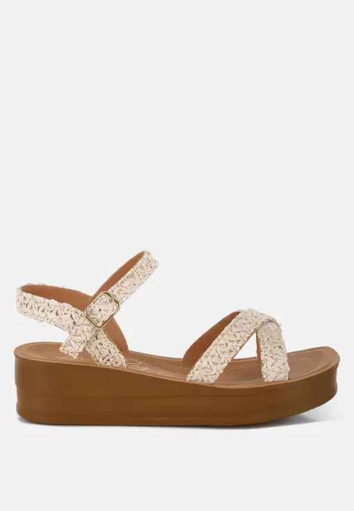 Women’s Shoes London Rag Sephone Woven Square Toe Wedges | Beige