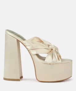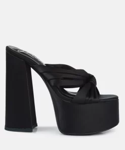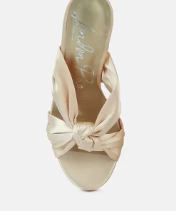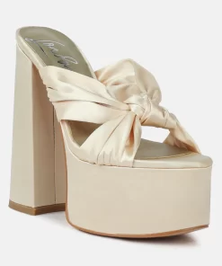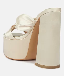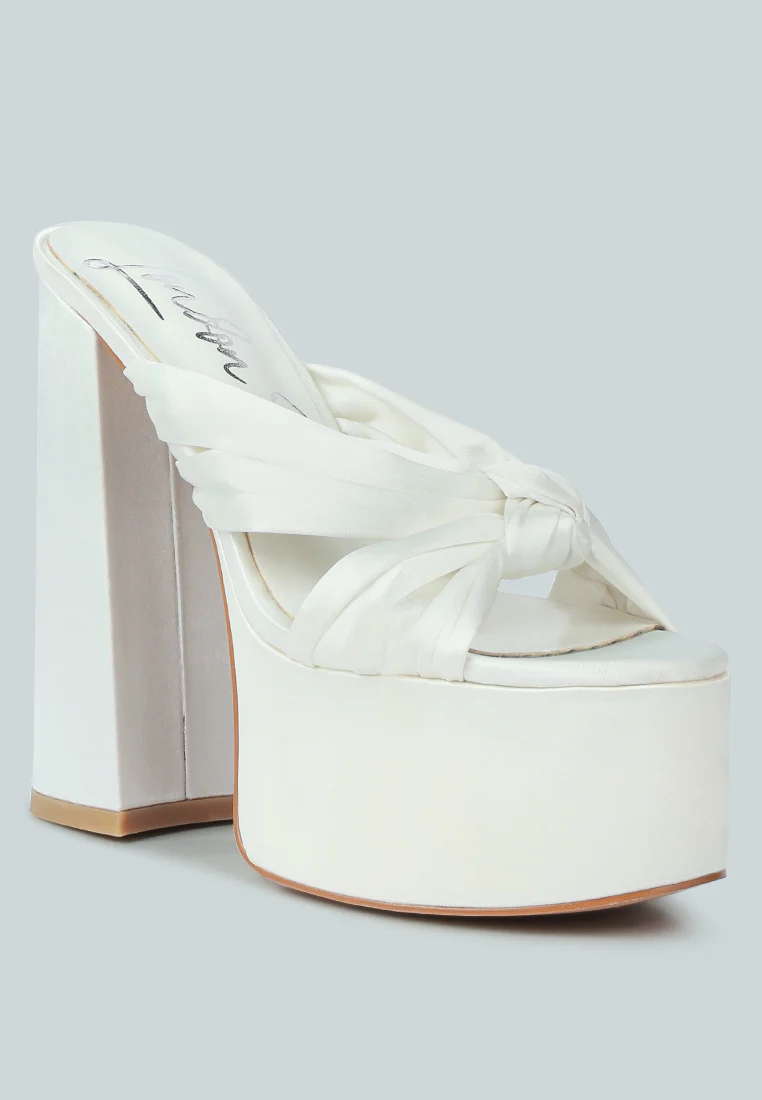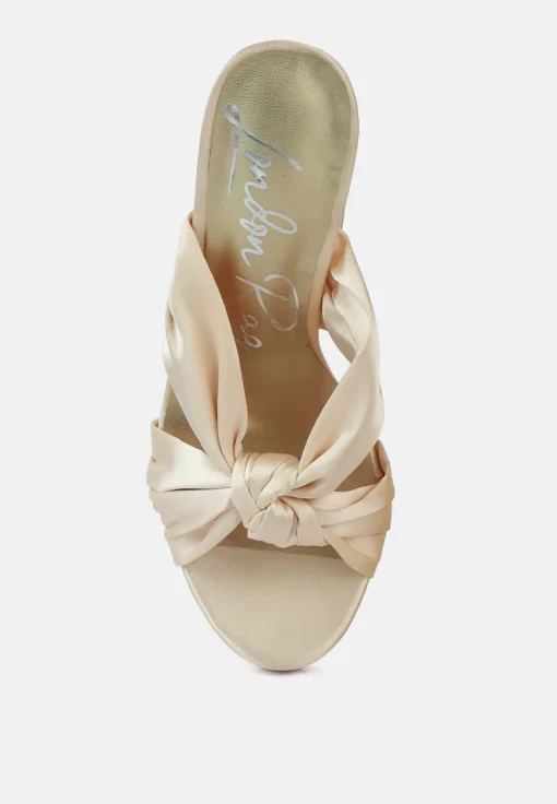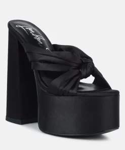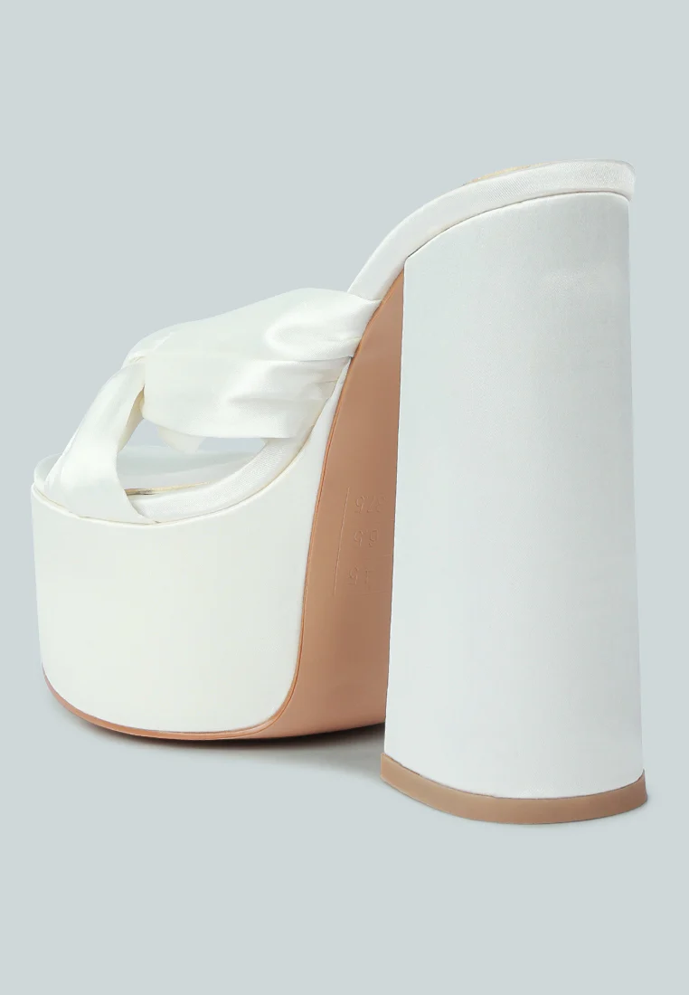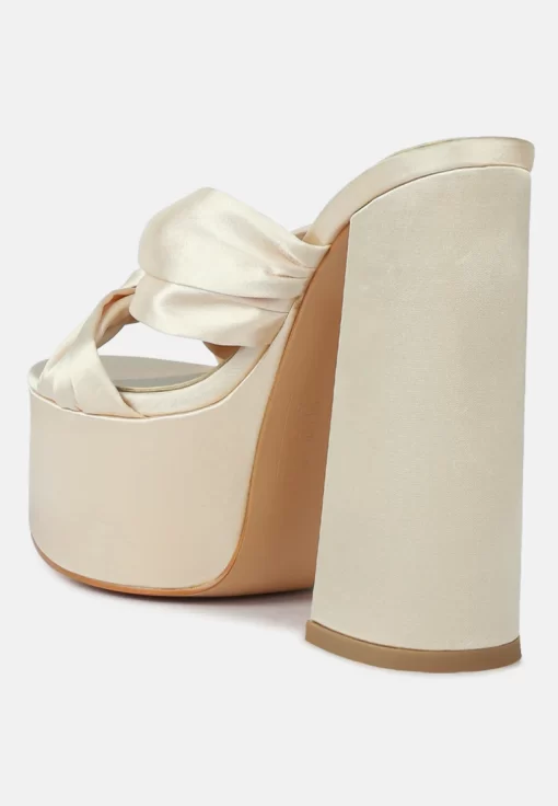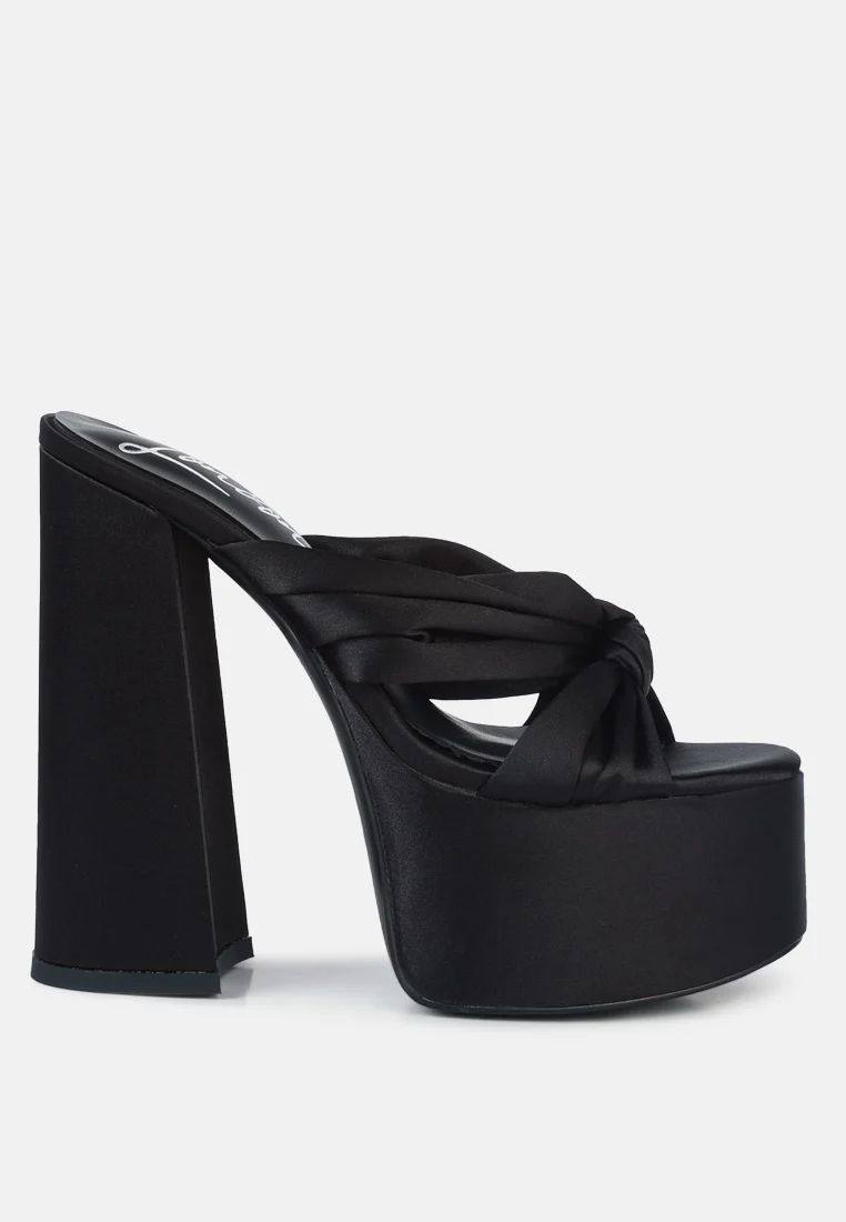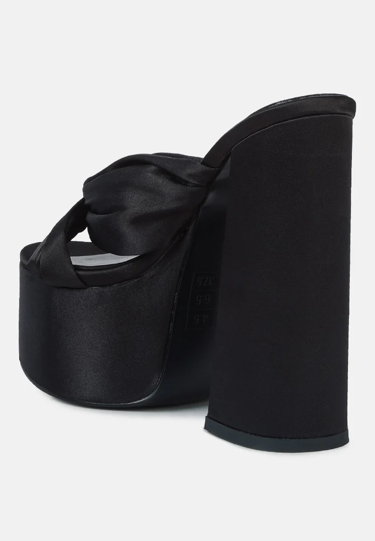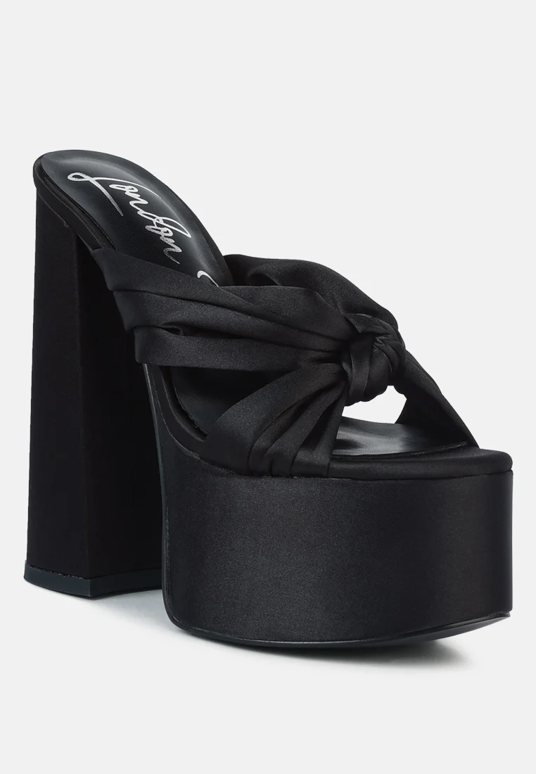 The dressy sandals make a bold yet alluring impression with the chunky platform heels and satin knotted strap. These would pair lovely with elegant dresses, especially as wedding shoes. They are also great for fancy parties during holiday season.