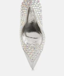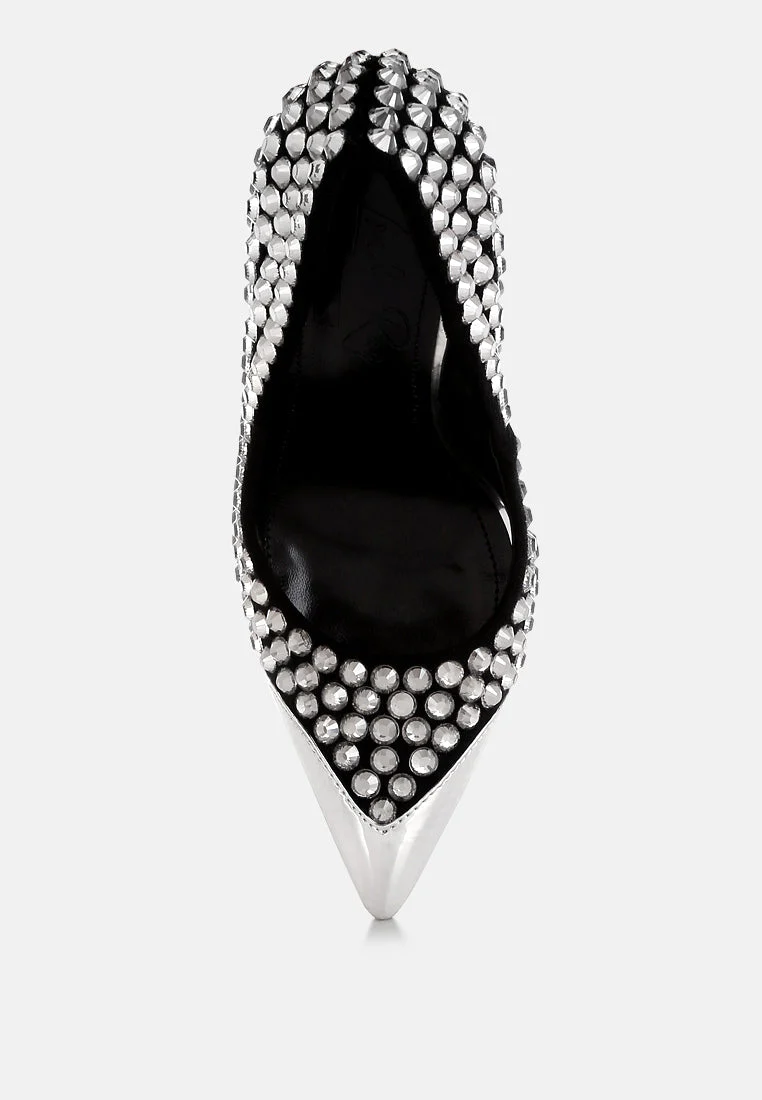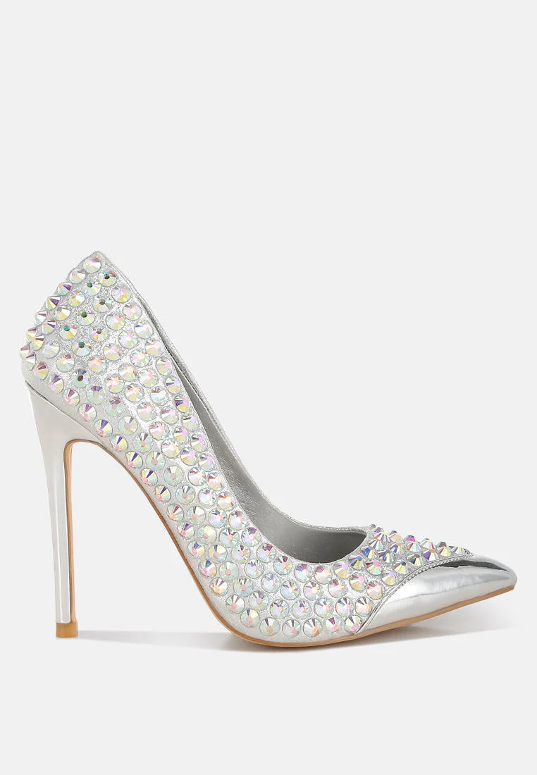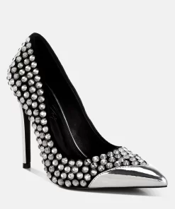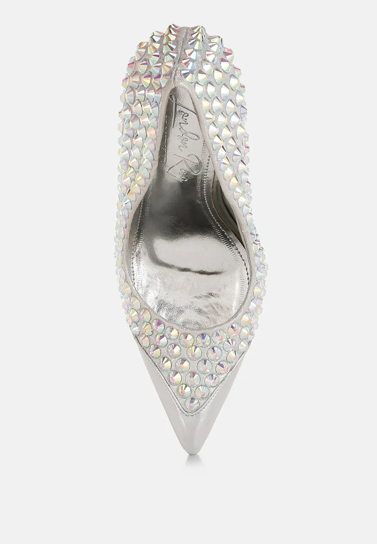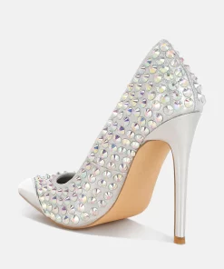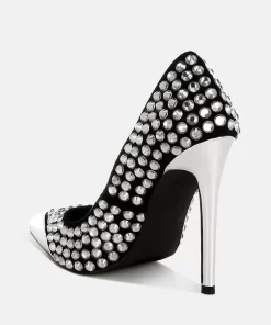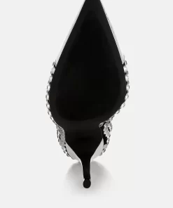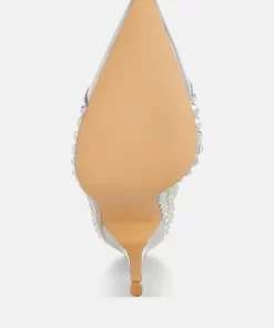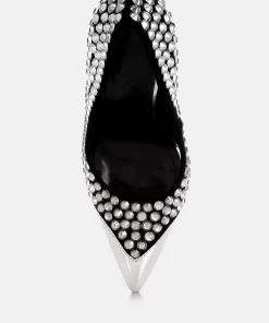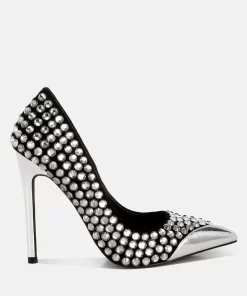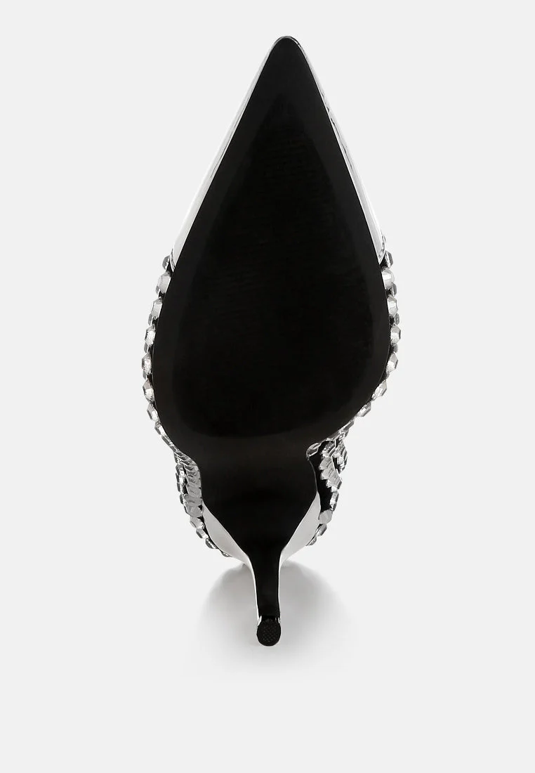 The pumps are glamorous with the beautiful chunky diamante embellishments which give the shoes an elevating three-dimensional look. The pumps have soft cushion insoles which cut strain and offer a comfortable fit. Pair these with a beautiful cocktail dress and you’re sure to be a showstopper at the party!