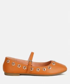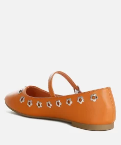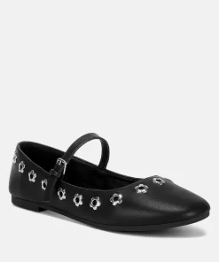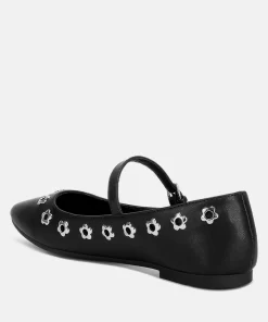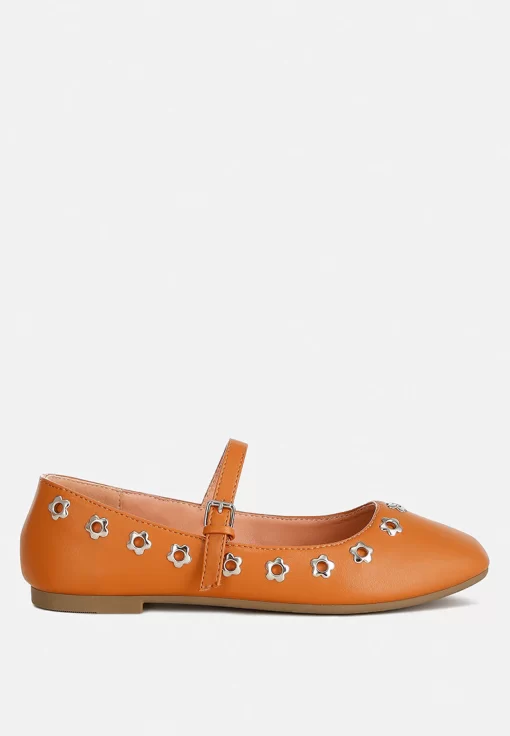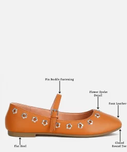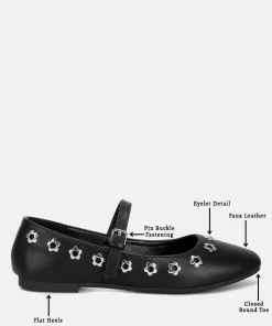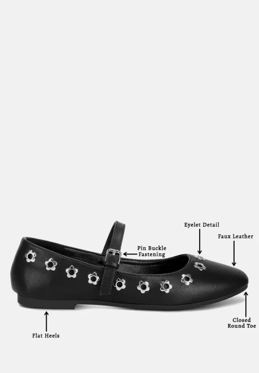 The round-toed ballerinas feature intriguing floral eyelet detail, offering casual versatility and comfort. With a flexible sole and comfortable cushion insole, they provide all-day support. Crafted from faux leather, they perfectly complement casual and work attire.