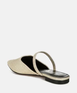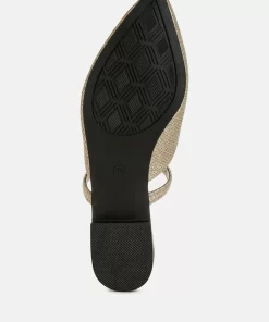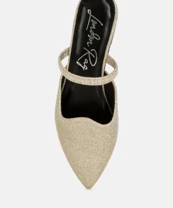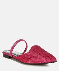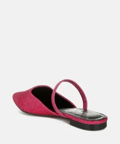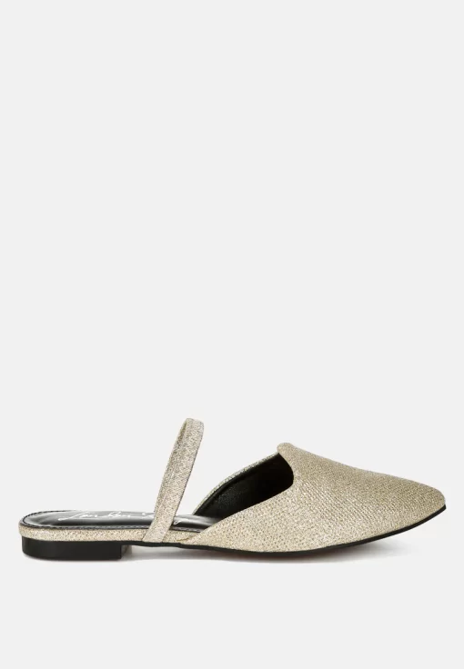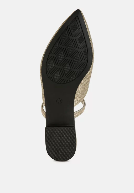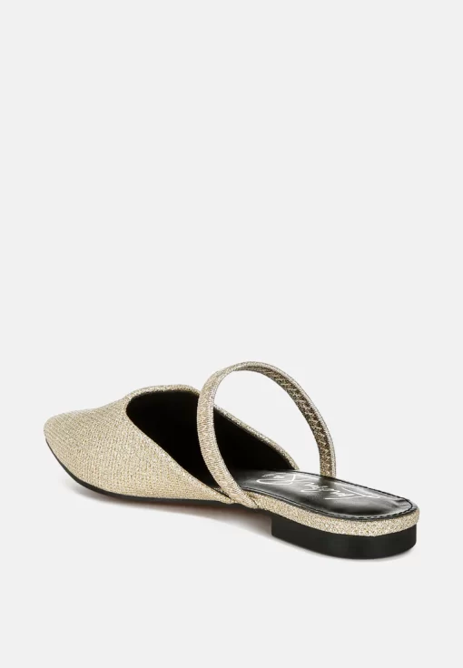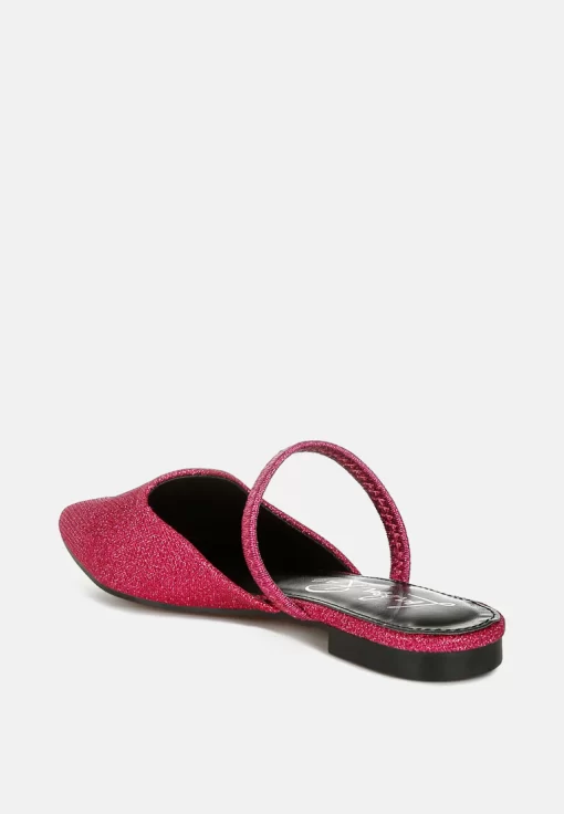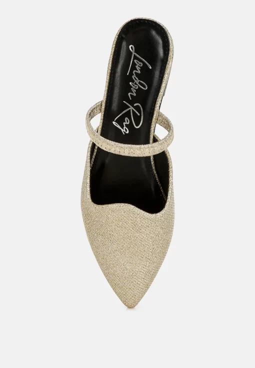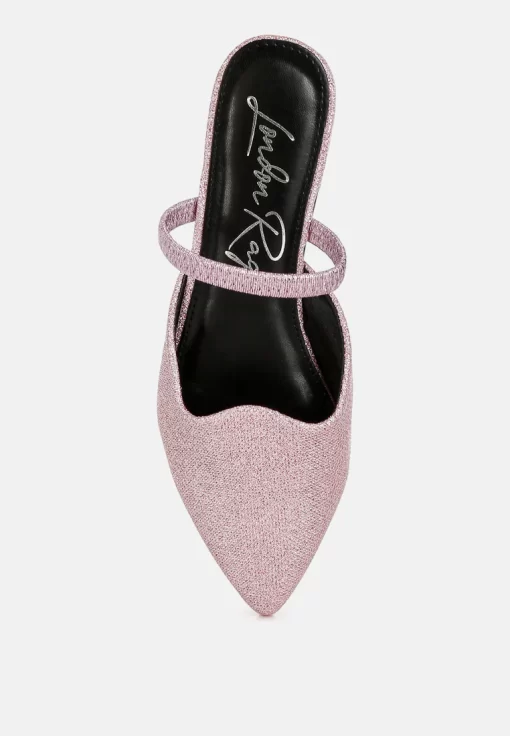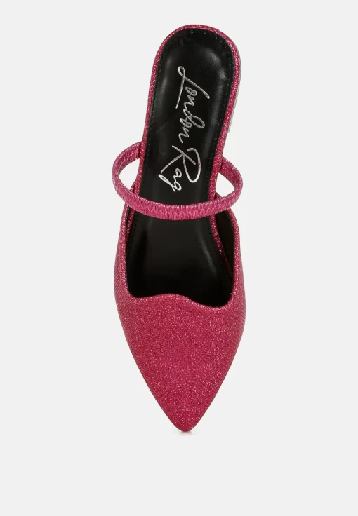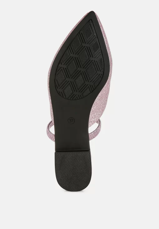 The glitter mules are uber chic with the glitter upper and pointed toe detail. The strap detail adds another dimension to the visual aesthetic while the comfortable cushion insoles offer a relaxed fit. The slip on sandals are perfect for when you’re looking for style as well as comfort.