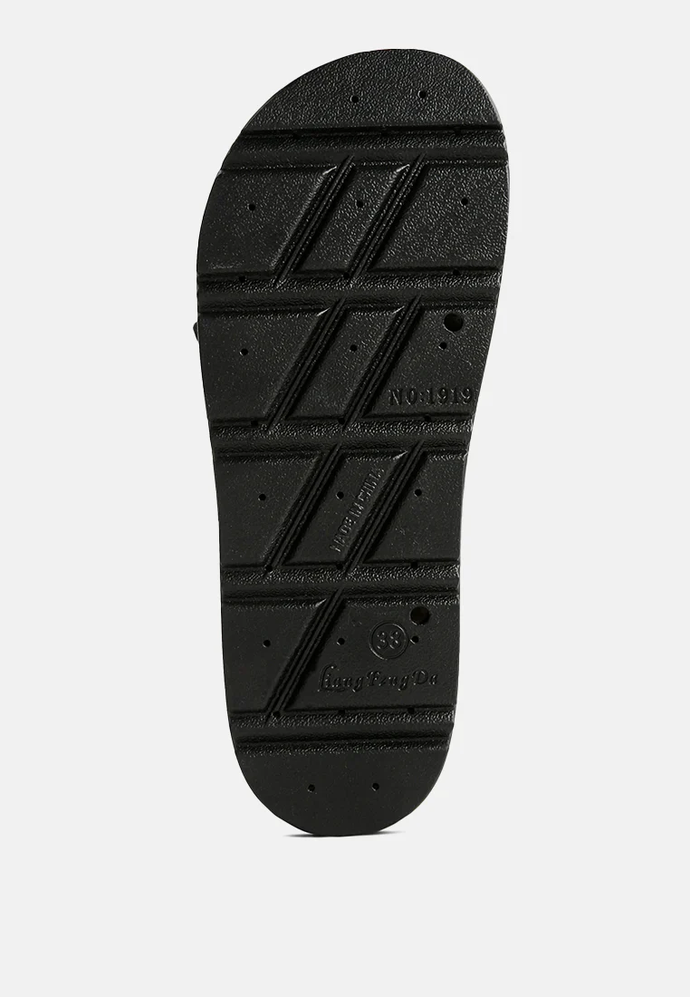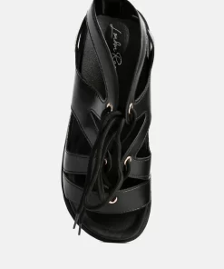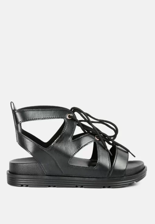 Tie-up detail flat sandals with soft faux leather with tie-up detail which secures feet well. Has gripping outsole which gives grip across all surfaces.