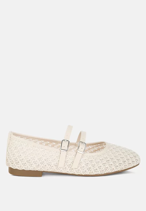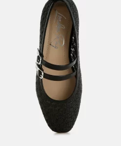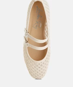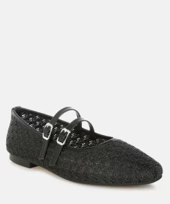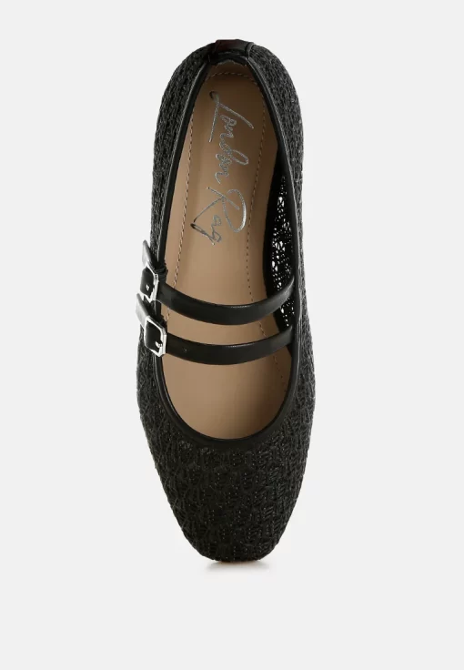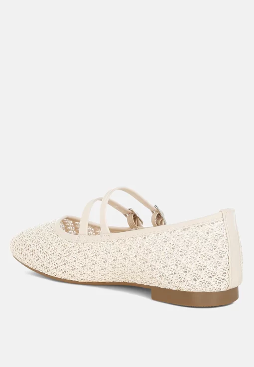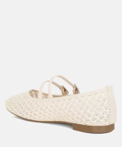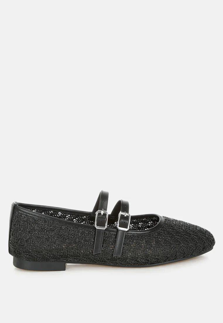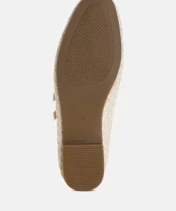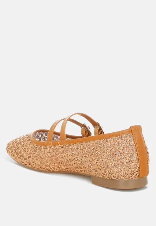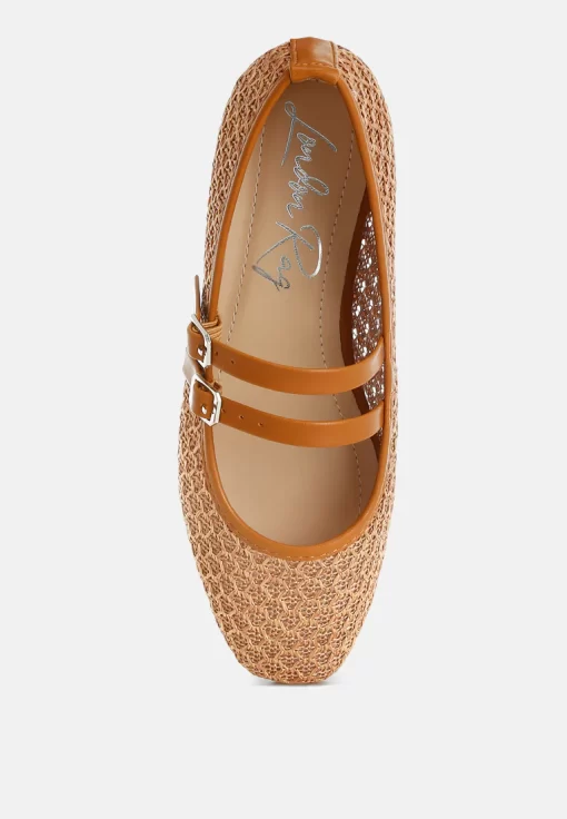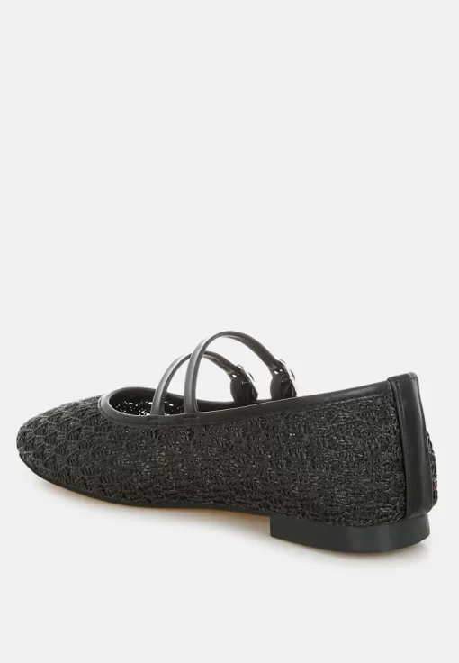 Designed for ease and style, these square-toe ballerinas feature a soft cushioned insole and adjustable pin-buckle midfoot straps for a snug fit. The woven raffia paired with premium faux leather adds an anomalous touch, making them a go-to unique pair.