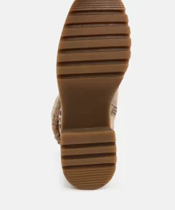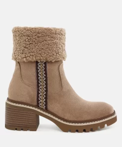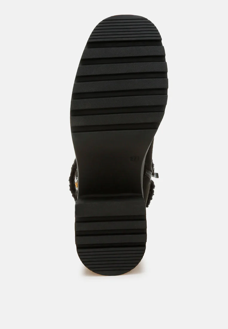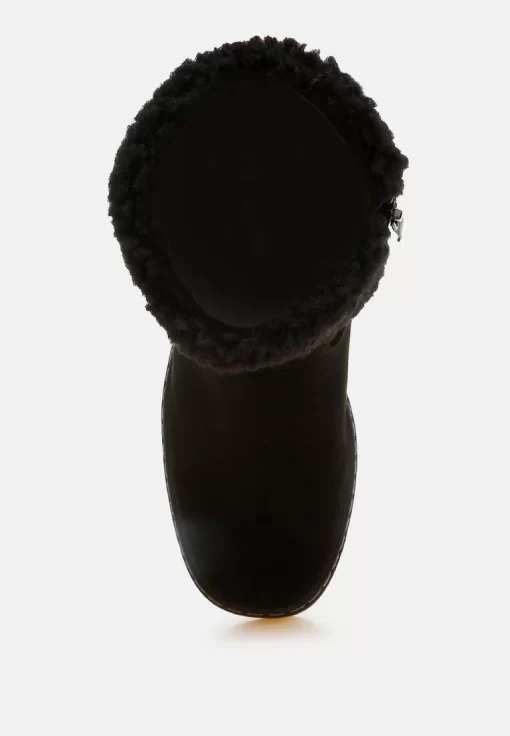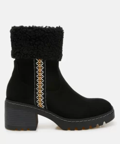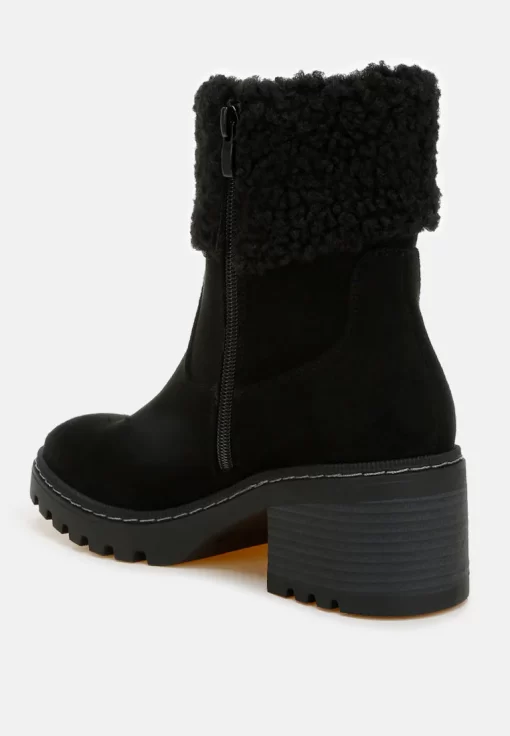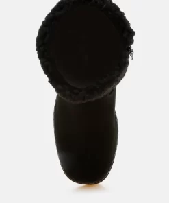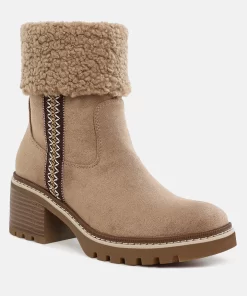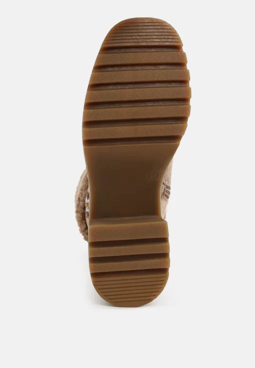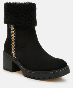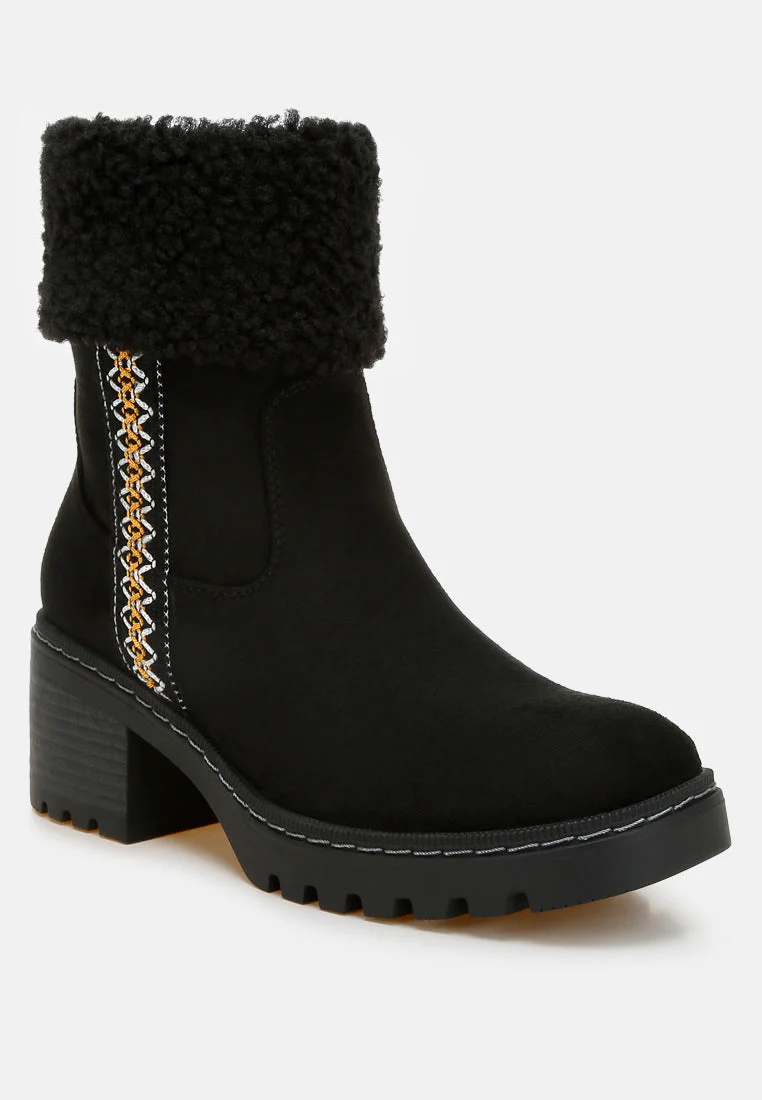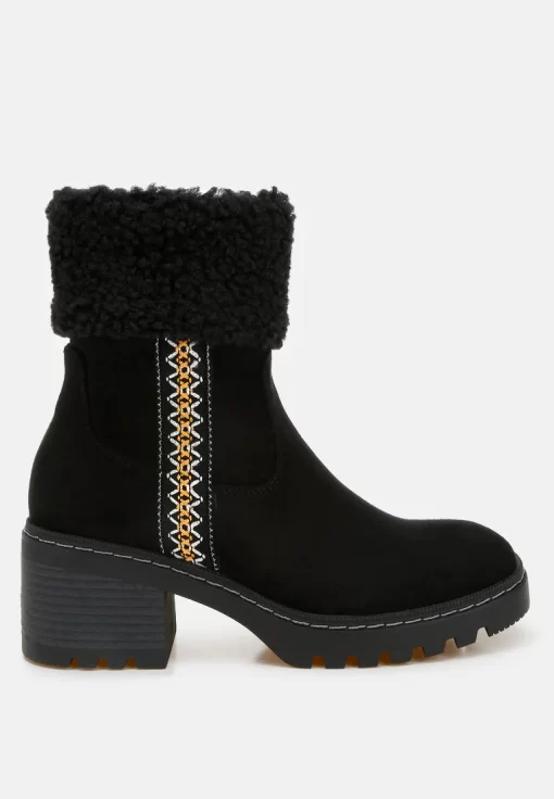 The snow boots with the thick fur collar are sure to give a cozy fit. The embroidery details elevates the design of the boots and give them an intriguing visual aesthetic. The block heels and comfortable cushion insoles give a relaxed fit.