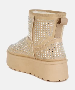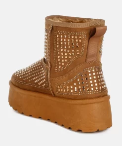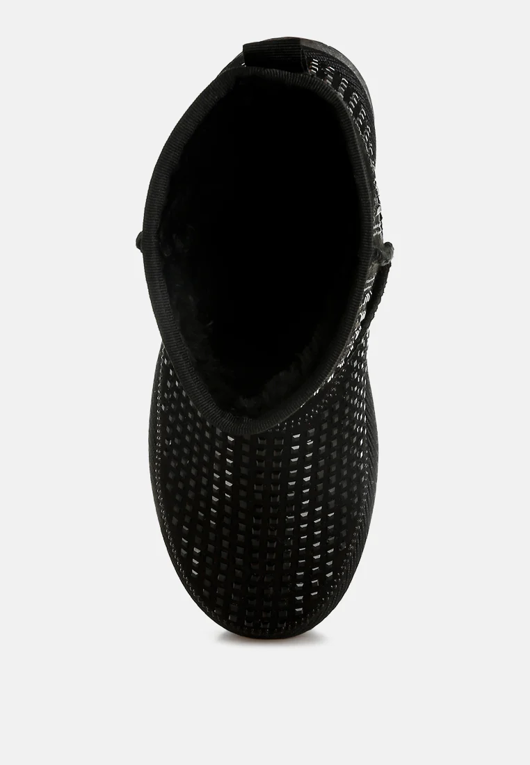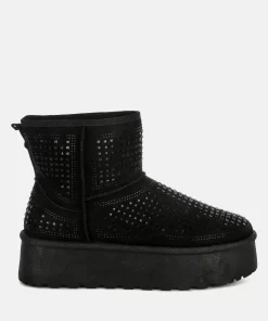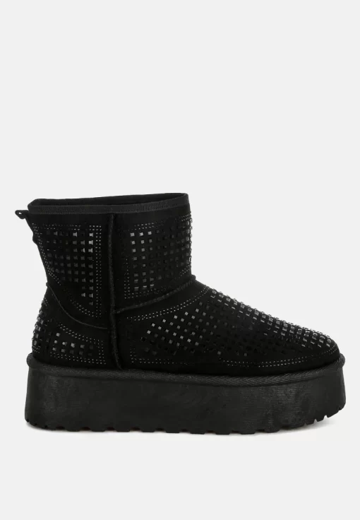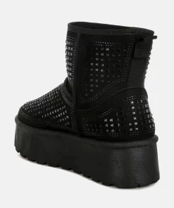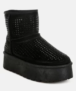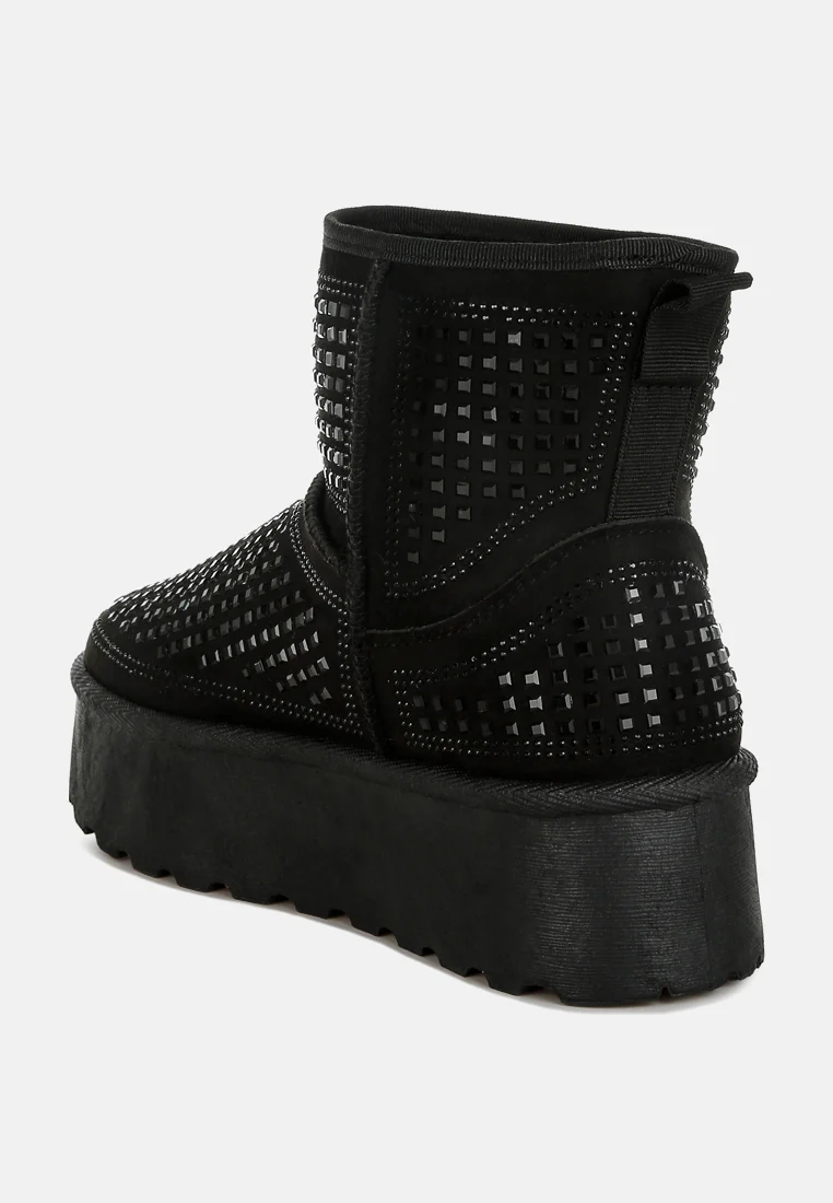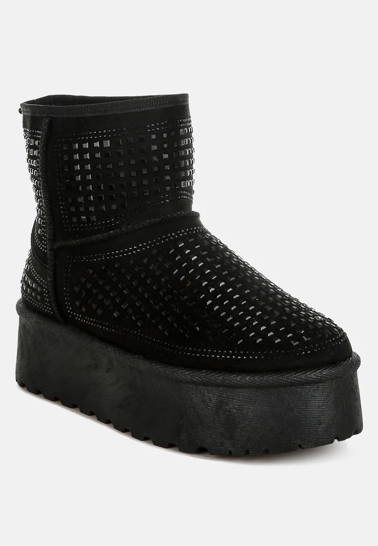 Introducing our chunky ankle boots—where warmth meets rhinestone sparkle. Featuring stylish panelling, comfortable 2-inch flatform heels, and soft cushioned insoles, these boots feel like walking on clouds with a hint of shine. They’re perfect for lounging at home, running errands, or when out and about on a lazy day.